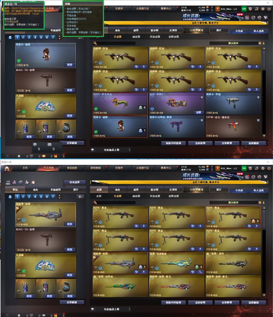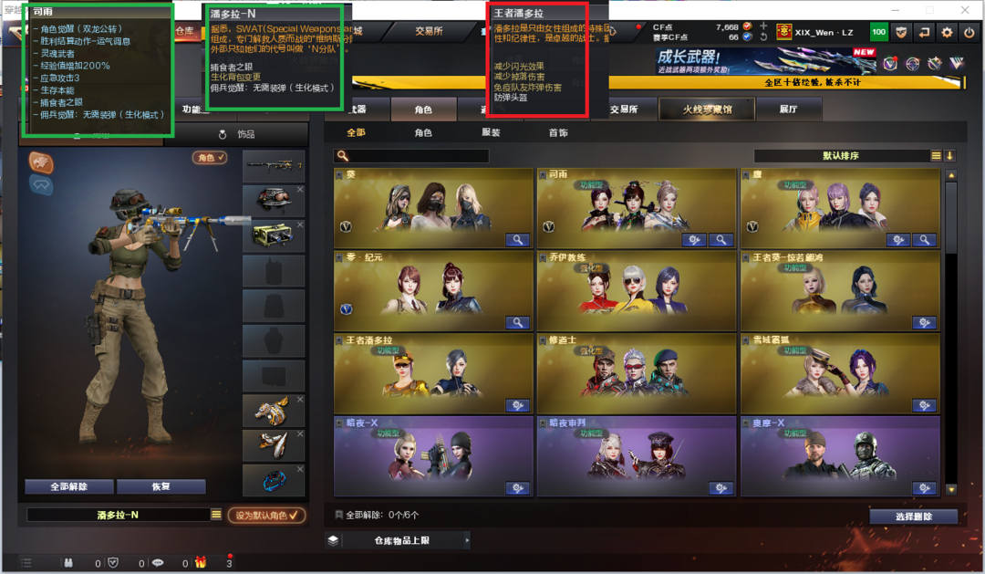装备描述:排位:可以------------ 生化精品号(生化背包、可以查看僵尸血量)无需换弹、6烈龙、6盘龙、炼狱+音效、斯泰尔蝴蝶、MK5-炽火炎龙、死亡之眼、MAC手枪、手斧镜、生化雷、超级对讲机、全部弹匣、、、、、、、、、爆破四防:幻神2皮+音效(冠军之幻、纸灯笼皮肤)、98K星神、冠军之特、柯尔特竞技荣光、QBZ金色蔷薇、、、幻神音效、裁决音效、星神音效、蔷薇音效、毁灭音效、雷神音效、炼狱音效、极光音效、火麒麟音效、黑骑士音效、、、1套雷霆、1套雷暴、2套竞技荣光、5套云龙、1套玄豹、1套雷霆王者、、、生化人物(司雨、潘多拉-N)爆破四防(鹰、王者潘多拉)