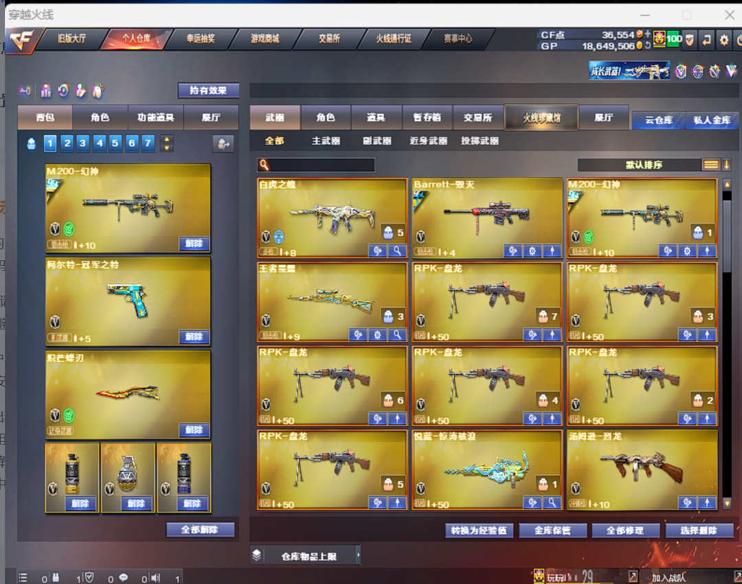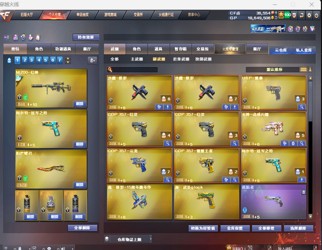 传说影煞⭐炽芒蝶刃×2⭐幻神三件套⭐传说灵眸⭐g36c幻影⭐王者星霆⭐6烈6盘+蝴蝶⭐白虎之魄