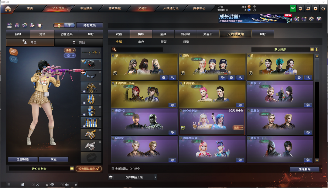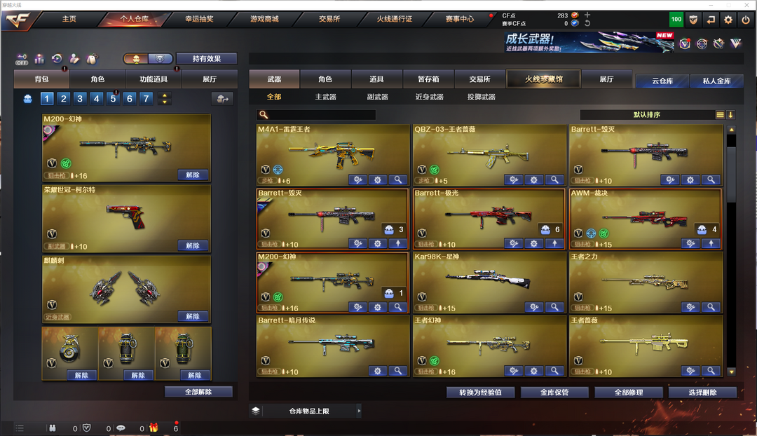 限制: 撤单率<50%才可租用此帐号装备描述:95v/14王者 [m200幻神+幻神-ag17冠军/幻神-降龙+usp雷暴+炽芒蝶刃] [云悠悠+m200-竞技荣光+柯尔特-竞技荣光+警天-竞技菜光+竞技荣光雷套] [武器]《gbz金色普薇+金色普微哈娘阿敏》《scar白虎+白房音效卡+白虎-暗星》《5烈龙+毒峰+死亡之眼+异变清道夫》火麒麟+火麒麟音效卡+火麟-战神关羽/火麒麟-传奇even、雷神+雷神音效卡+雷神-战神赵云、黑骑士+黑骑上音效卡+黑骑士-少林、无影、hk417-朱雀+朱雀-武当、王者冰魄、王者火魄、天龙、毁灭+毁灭音效卡+毁灭-cfs2018+毁灭战神张飞、裁决、王者之怒、炼狱、修罗、天神、usp雷暴、cop堕天神、屠龙、龙啸、擎天、麒麟刺、麒麟刺-堕天神、马来剑-夜魔、王者之锋、雷霆雷套、夜魔雷套、堕天神雷、[角色]云悠悠、晴