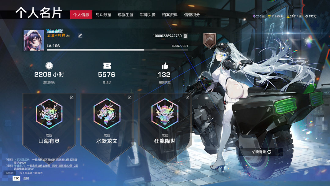 装备描述:零界行动战力7221,联动皮肤HK416-可露凯,七海Nana7mi,满级金色uzi,AKM神魔降临,QBZ192狂龙,BSG-14狂龙,AWM炎魔咆哮-冰魔轻语-青龙,沙漠之鹰-星环神隐,拳套-银獠荣光,蝴蝶刀-霓幻蝶息-澄空碧影,不朽角色-光影舞者,变异体-罐子-严抓-魅影-魔丸。禁止更改游戏名字,账号价值较高,已达立案标准,恶意毁号,开挂必追究刑事责任!!!