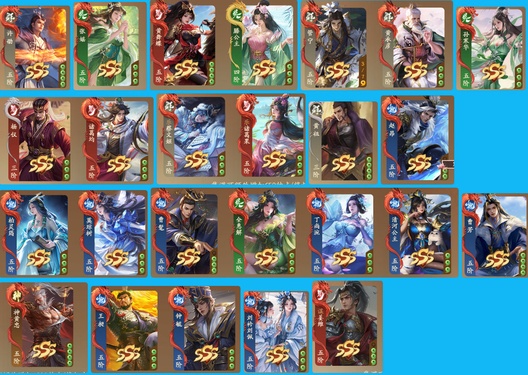限制: 租号1次及以上 | 撤单率<70%才可租用此帐号装备描述:全部统一没人租到时不顶(被顶说明其他地方出租了)懂的都懂,不解释那么多。 电脑手机都可以玩(不分安卓苹果)举例带特效出框动态的武将:张瑶管宁孙寒华+乐蔡莫琼树