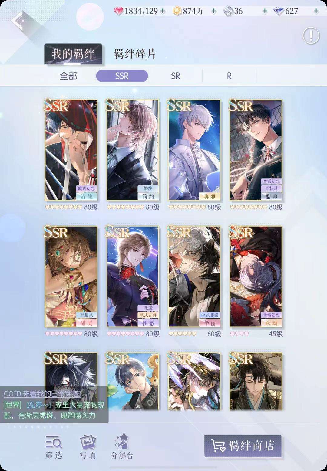 哈喽哈喽~✨有达到3933件时装,六星415件,多个背景板,SSR卡欢迎上号体验探索
