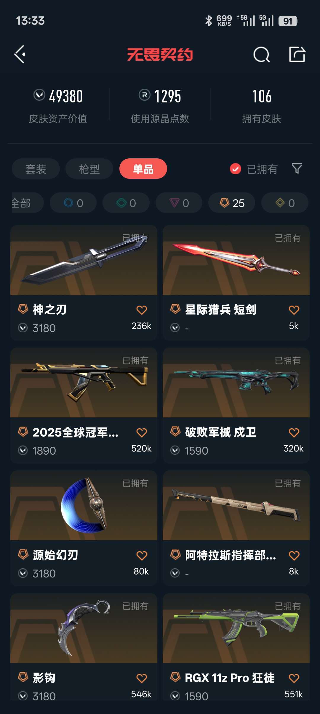 武器皮肤数量:106