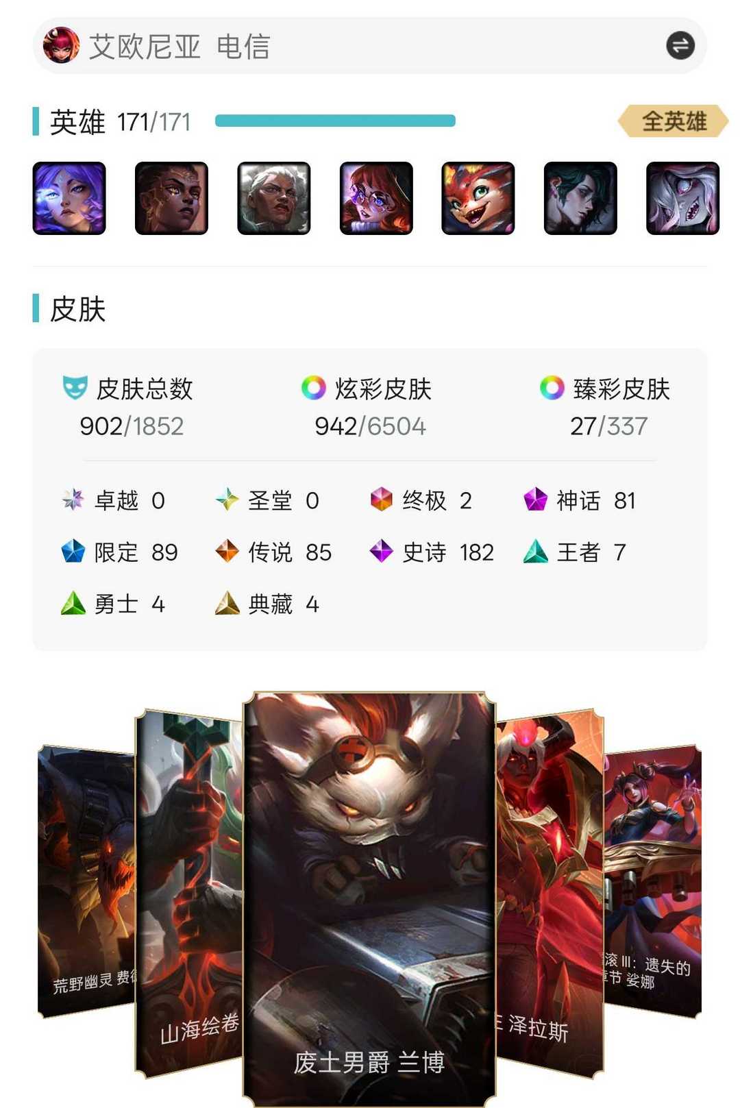 【艾欧尼亚】900原皮+950炫✨80至臻神话⚡彩虹马⚡泳池佐伊⚡鸡里奥⚡北辰之威⚡美猴王⚡永森奥恩