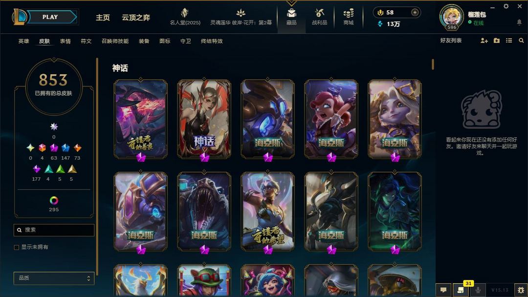 ██ 全英雄 1600皮丨70神话丨可排位丨IG卡莎丨斩星御星丨莲华瑞文丨EDG男枪丨泳池女警佐伊