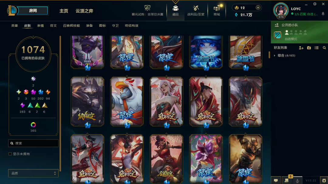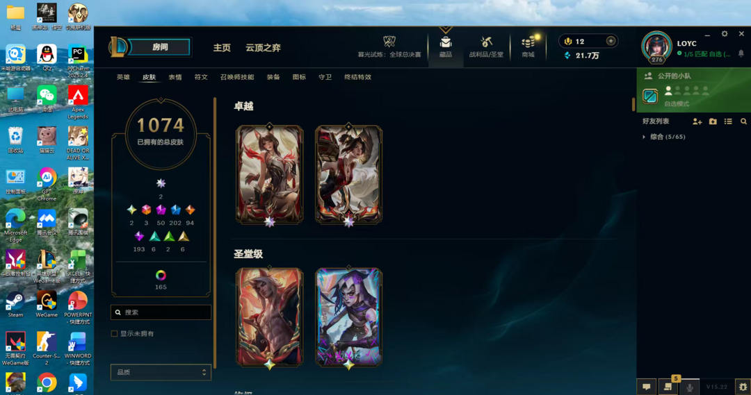 【联盟二区】可排位★全皮肤1300★原皮1074+炫彩198+臻彩28★可排位★圣堂拉克丝★圣堂瑟提