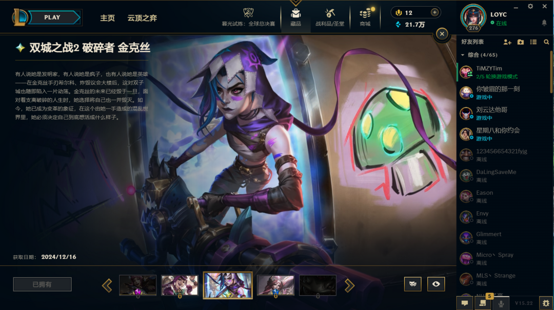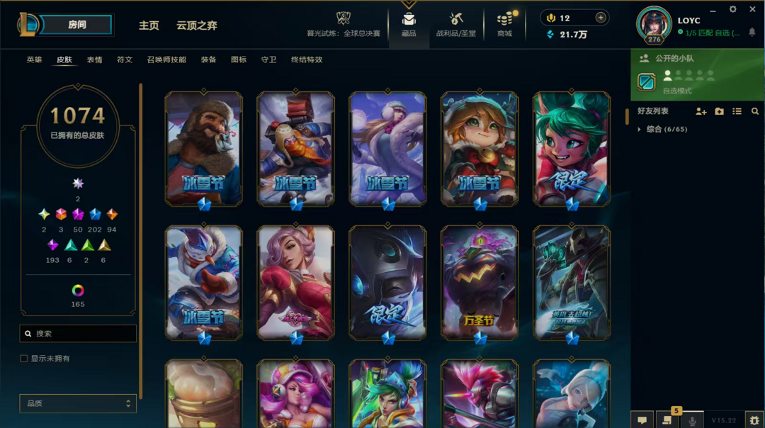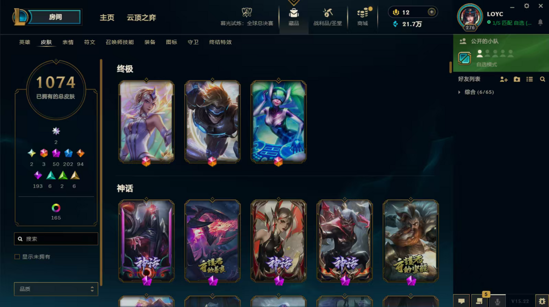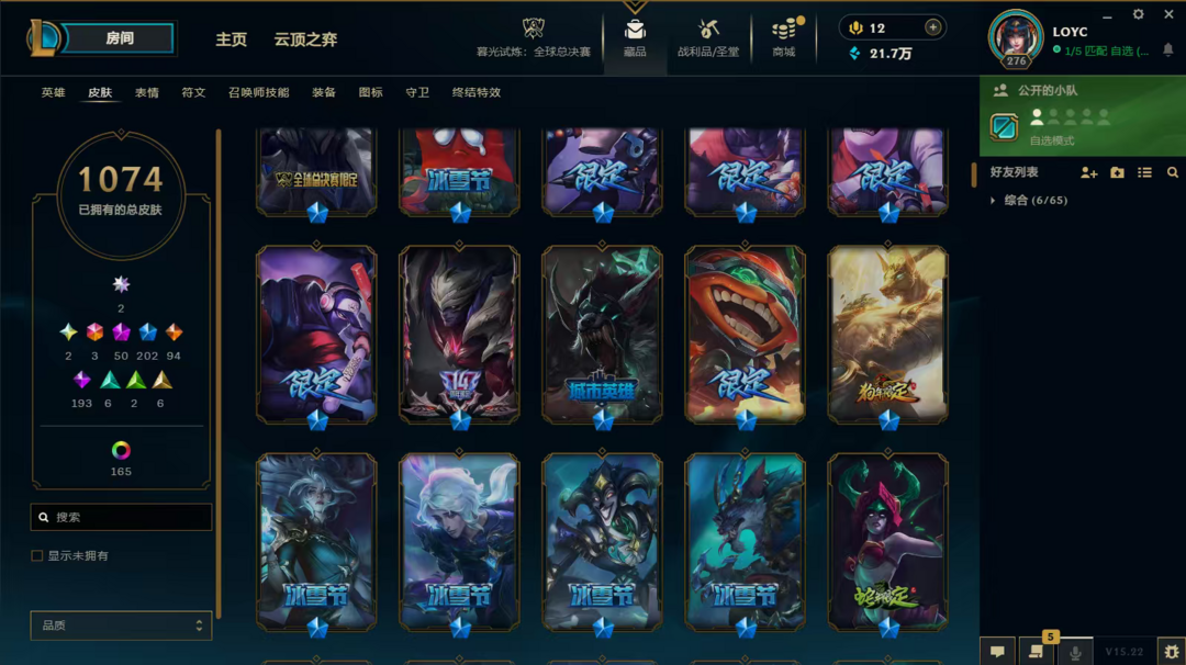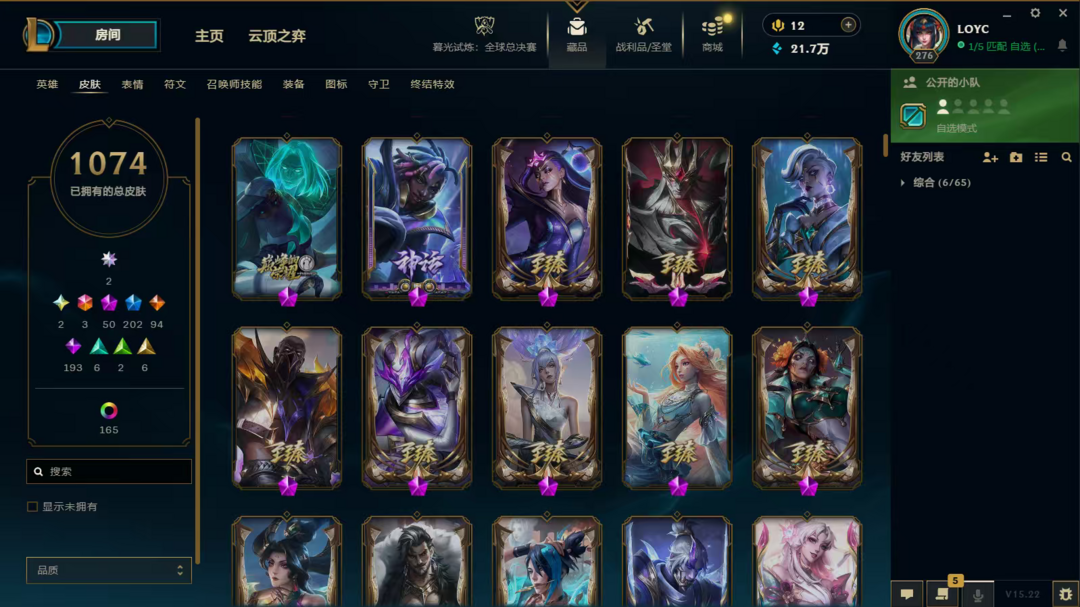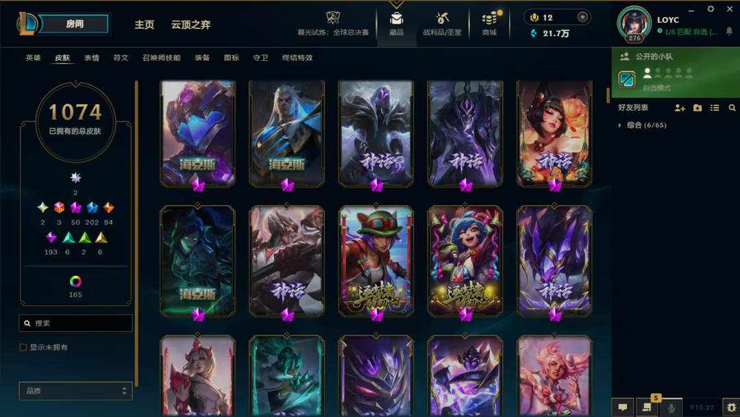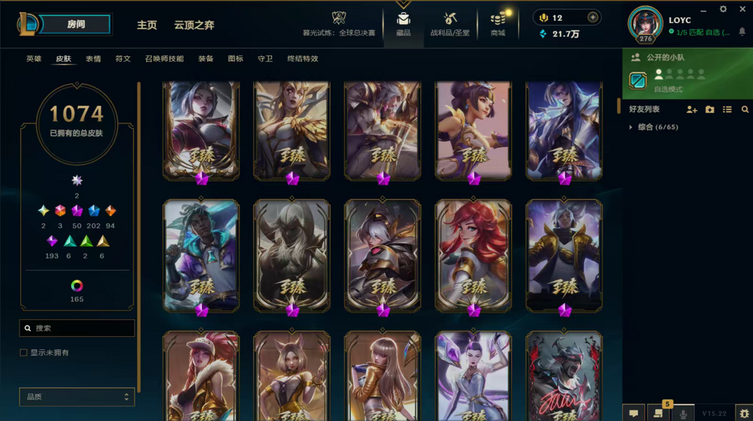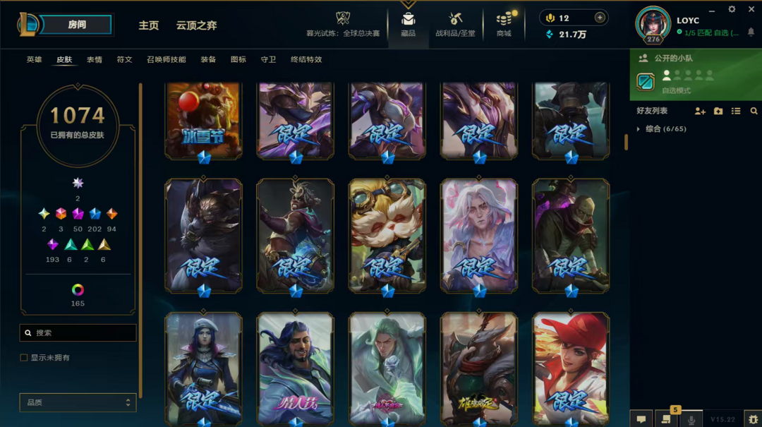 装备描述:LOL顺子编号是56789,造就了极度稀缺性,皮肤套装收集度超高,难得一遇的极品号,。双圣堂加持,皮肤多,神话、终极、限定、炫彩,臻彩都有,英雄全,,具体看图。账号等级高,具体皮肤数量1074,圣堂2,神话50,终极3,限定202,臻彩28,稀有皮肤齐全。LOL账号,极品毕业号,在租号玩平台认证,货架号是15115168 质量无需担心。可先验号,支持换绑,喜欢私聊。