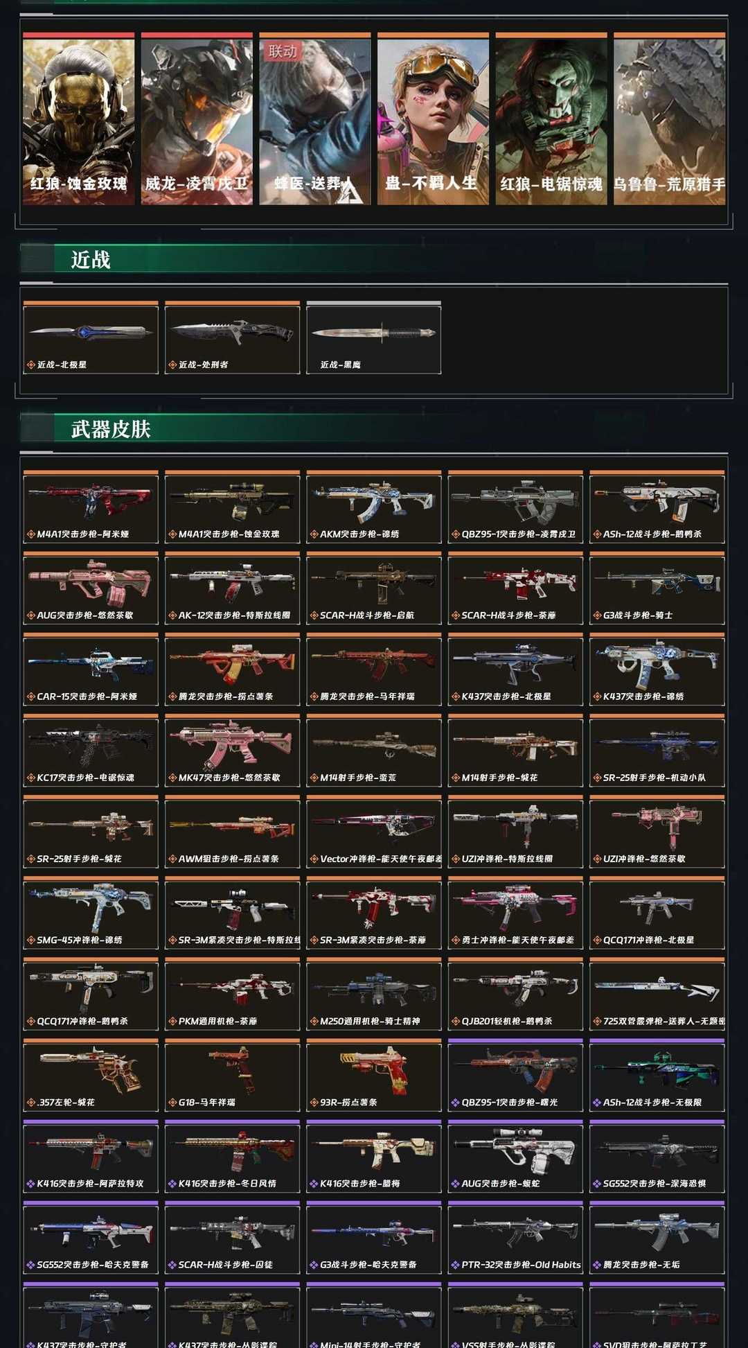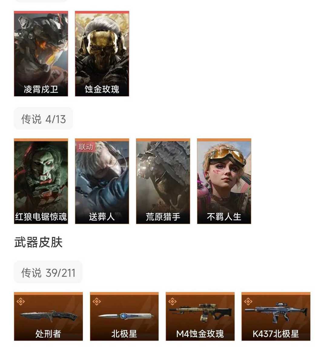 皮肤号 北极星凌霄戍卫,蚀金玫瑰,39款传说枪皮
