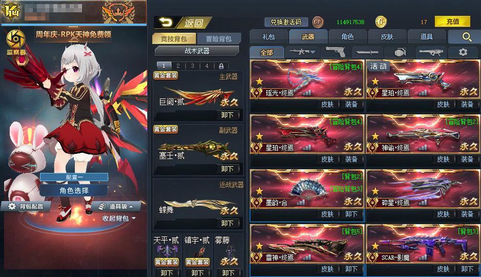 装备描述:全平台唯一一个号双星珀终焉(秽月皮) 22把传说武器 全传说(无龙息)全彩金 1500W战力 全六级芯片 三强化不灭星核贰 三强化撼天贰 全服唯一异能塞壬 全服唯一异能振宇 新彩金:天平贰 巨阙贰 晶刹贰 已氪 给老板带来最佳体验! 变异体八面具 经典变异可原地复活 满配满强化终末之弩变异最强反伤 主播测评号◆双星魄新皮肤新传说瑶光终焉◆天平贰晶刹贰巨阙贰◆全服唯一异能塞壬异能振宇◆全六级芯片◆蝶舞双花束 注意事项 如果找不到描述中的武器可以在仓库右上角进行搜索(被取消收藏会跑到后面) 面具原地复活如果未生效,那就从选区服那里重进游戏即可解决 传说级武器:瑶光终焉⭐星珀终焉x2⭐神谕终焉⭐墨韵合⭐碎星终焉⭐雷神终焉⭐SCAR影魔⭐M4A1无限EX⭐屠魔⭐无尽光影x6⭐RPK天神x2⭐AK47天神x2⭐AK47主宰⭐万化无限爆裂 彩金武器:天平贰⭐晶刹贰⭐巨阙贰⭐广陵贰⭐万象贰⭐两仪贰⭐纵横贰⭐天枢贰⭐玉衡贰⭐风神贰⭐不灭星核贰⭐撼天贰⭐双蛇舞贰⭐魔典贰⭐宇宙雷贰⭐次元贰⭐聚能贰⭐裁决贰⭐无暇壹⭐激素贰⭐️三黯水晶贰