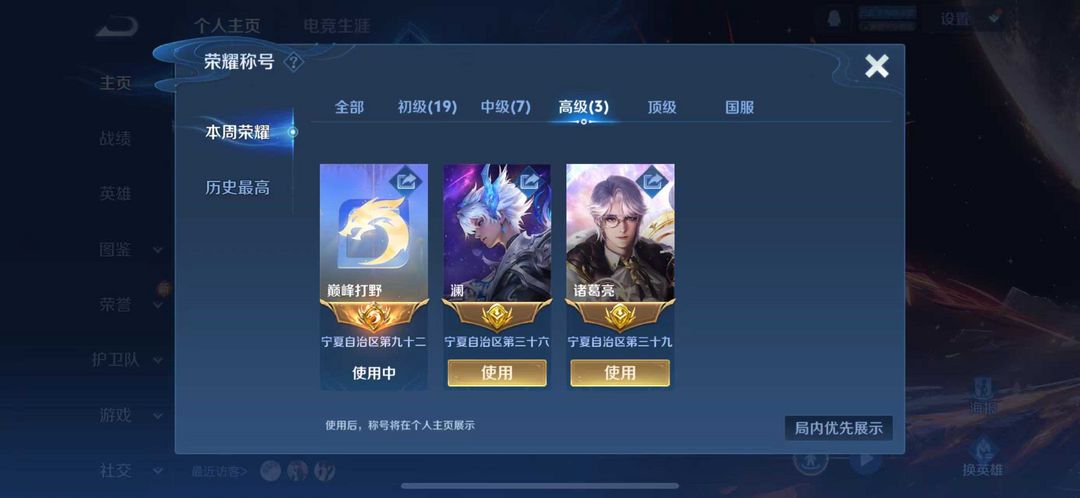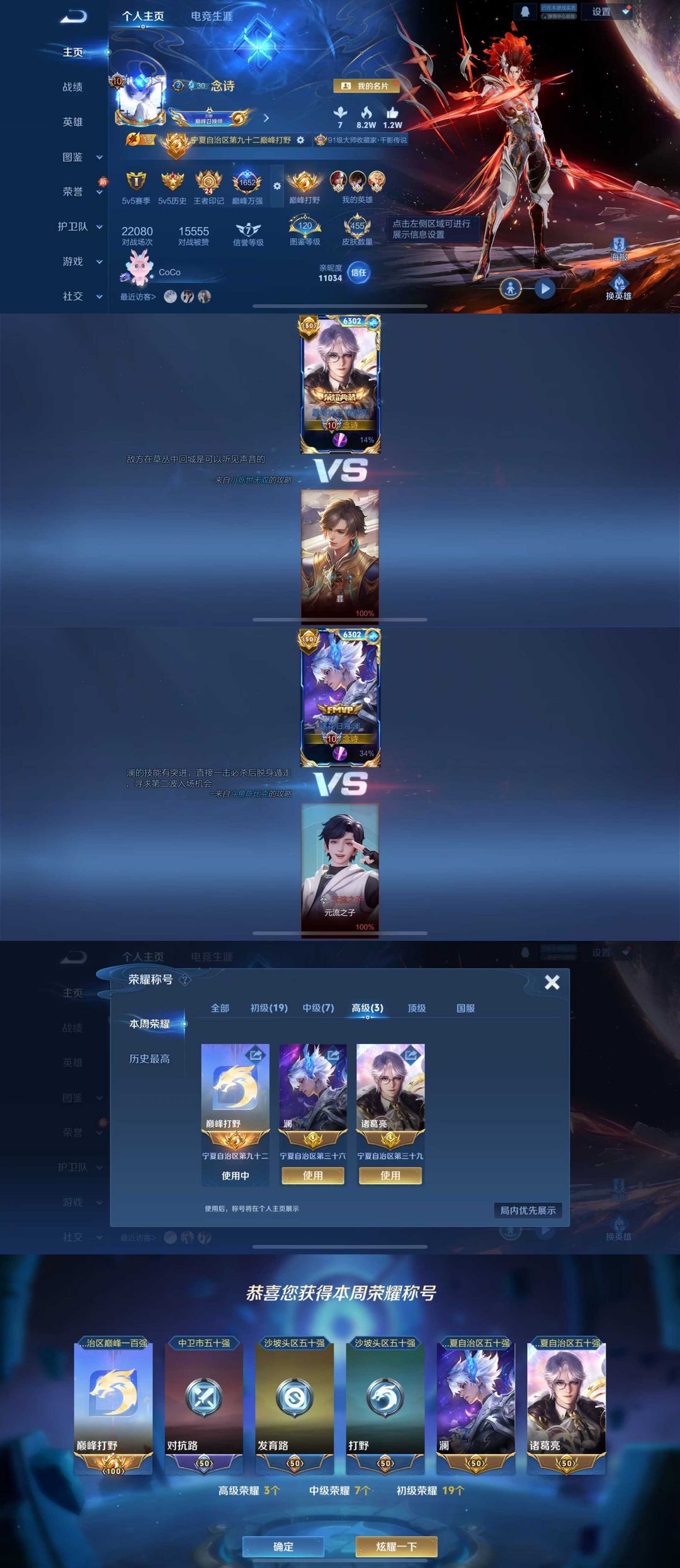 【本周打野巅峰万强六千名♥在榜省服澜诸葛亮李白】小魔方历史五国服♥韩信李白小乔无双巅峰相框♥不可巅峰