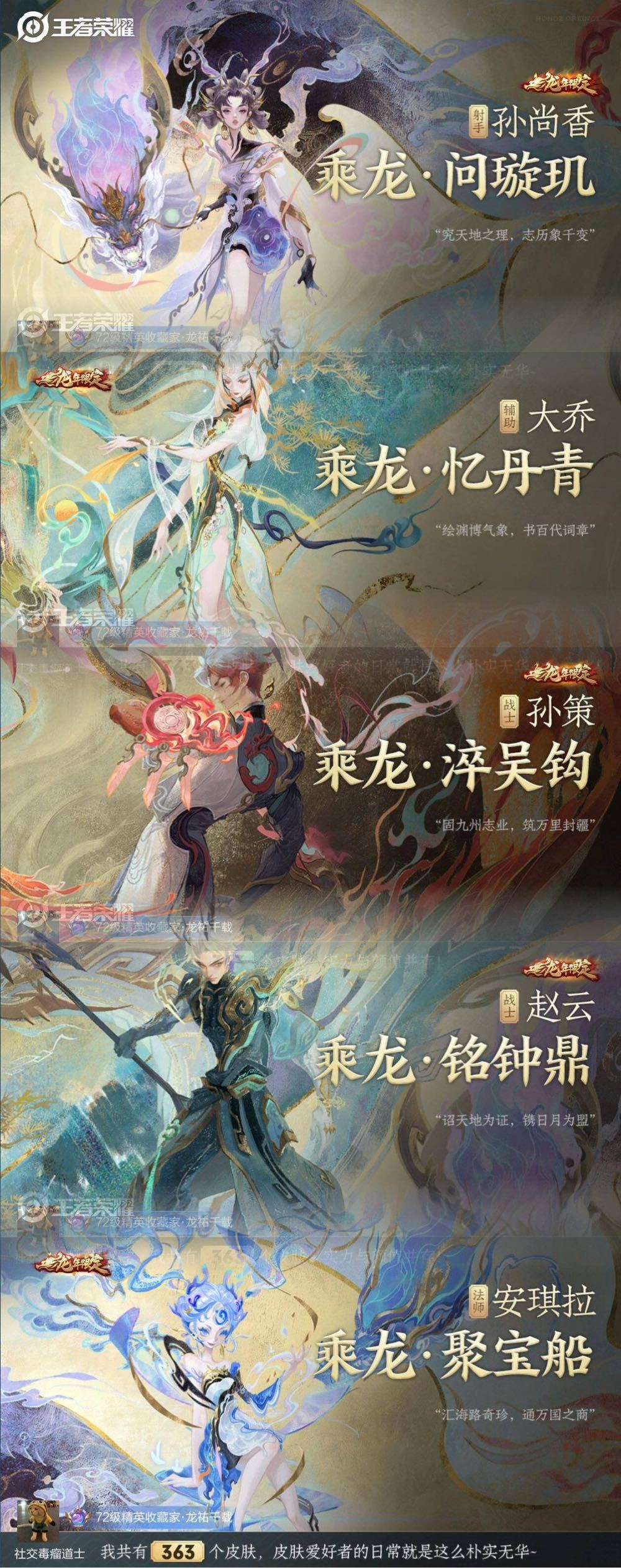 全珍品传说✨11无双✨无双v10✨全套龙年✨600皮✨虞姬木兰李白小乔凯荣耀典藏✨