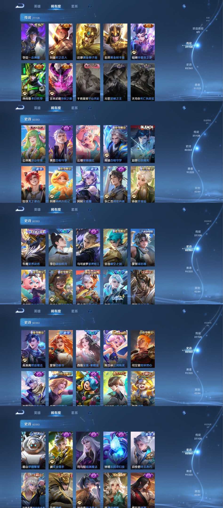 限制: 租号1次及以上 | 撤单率<49%才可租用此帐号装备描述:时间到了还登录白玩或者顶号全部改密拉黑处理永不解除,顶号机器会秒禁玩改密,顶号不仅拉黑还没得玩,赚三两块不容易,请理解谢谢。 ??????????????? 请勿开挂,挂机,送头,骂人,撤单后游戏等如有违规永久拉黑永不解除。 重置二级密码不要费劲了,号主每天都会上号查看,多行不义必自毙,人在做天在看,多做好事多自律,少做缺德事。 该号英雄125个皮肤243个,典藏1个,星传说4个,传说27个,史诗827个,祝你游戏愉快~