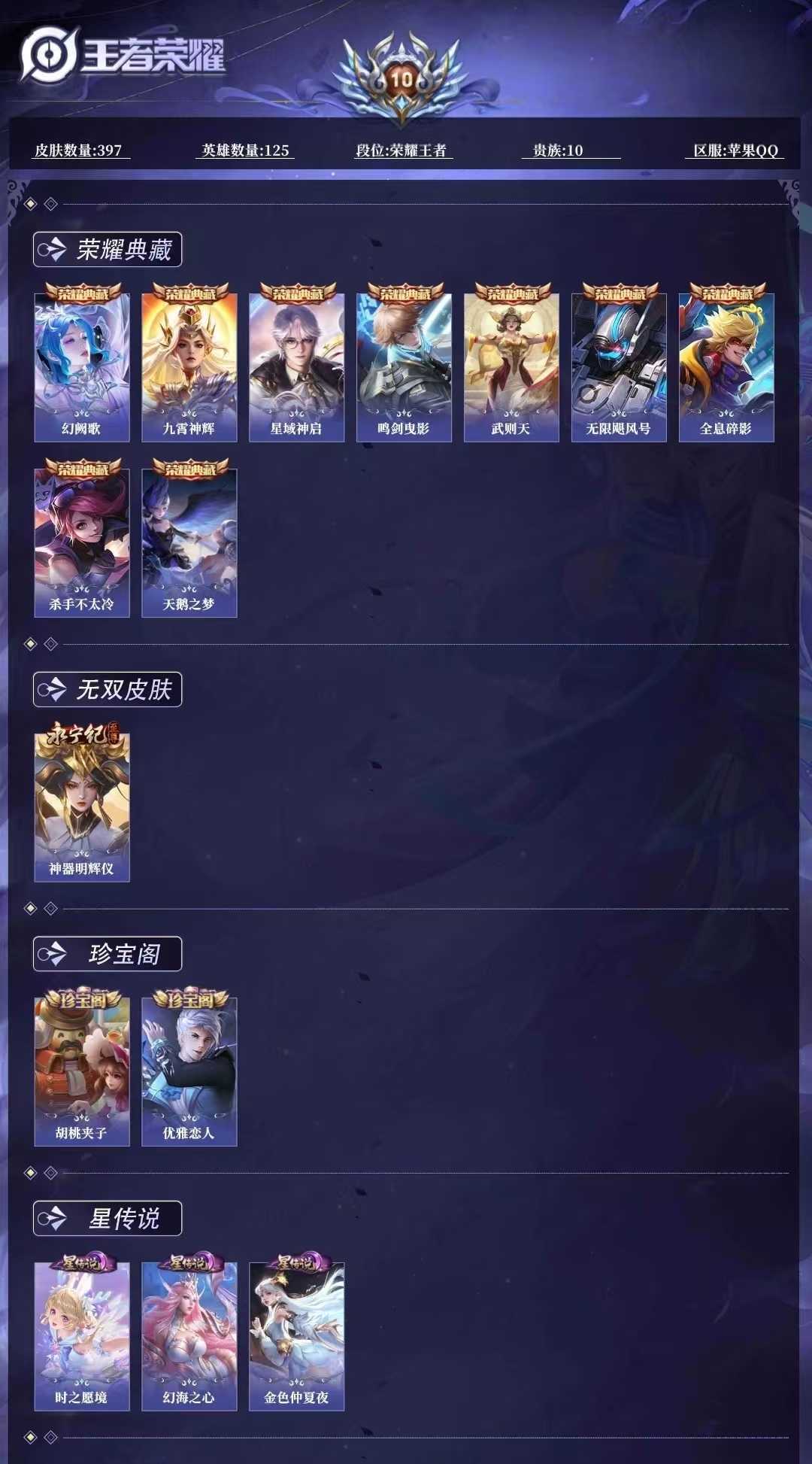 游戏区服:王者荣耀-QQ苹果-QQ账号