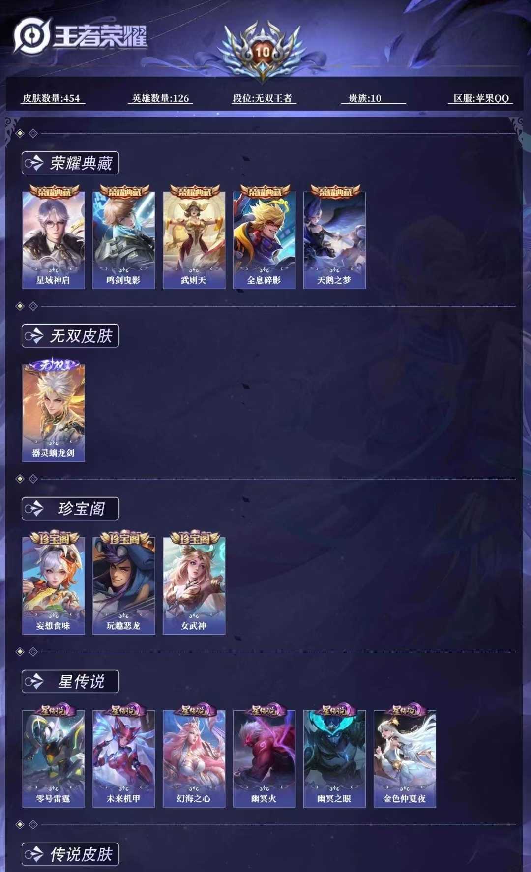 限制: 租号5次及以上 |装备描述:【C178】贵族V10~454皮肤,螭龙剑耀5水晶1无双45传说众生和妲己蛇年,4传说天幕,天鹅之梦,星域神启,全息碎影,鸣剑曳影【全山海情兔年,全寅虎,全五虎上将,全牛年,全五兽】