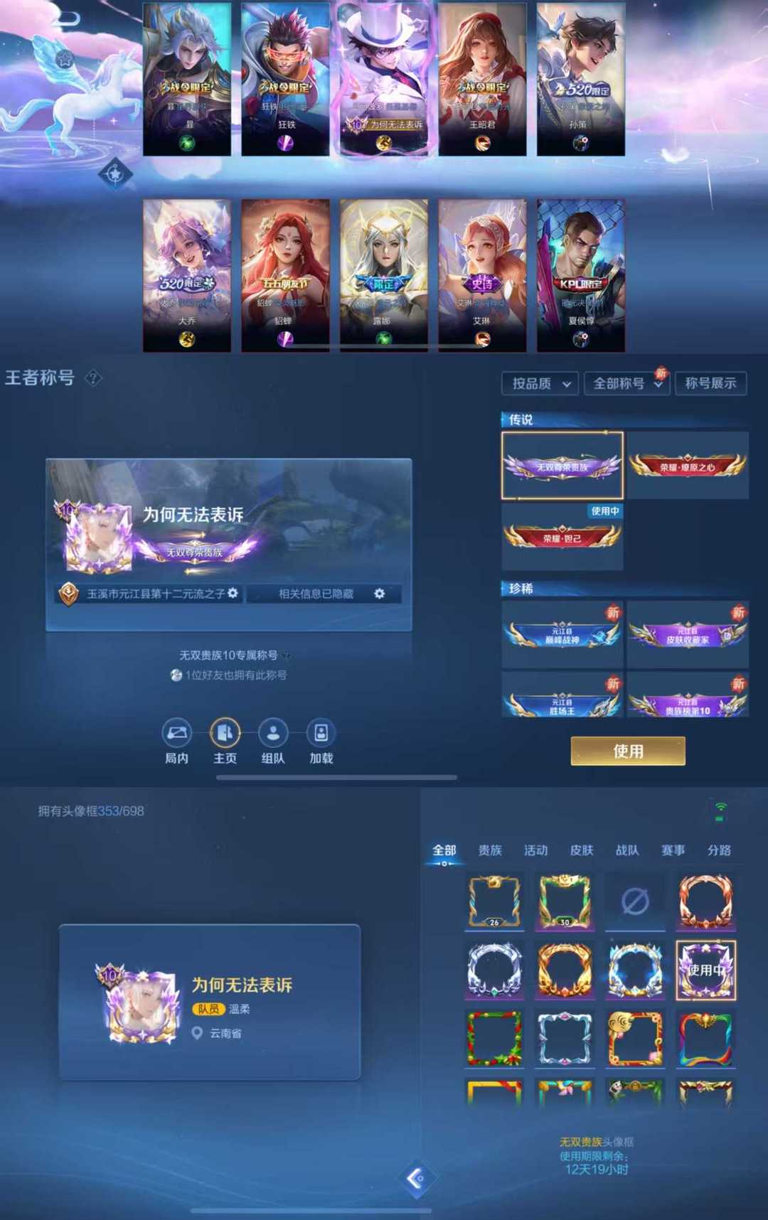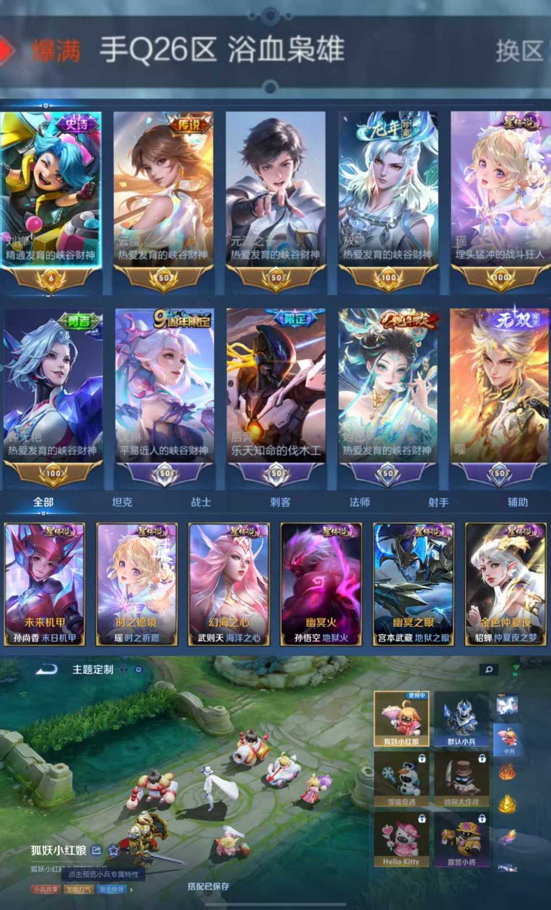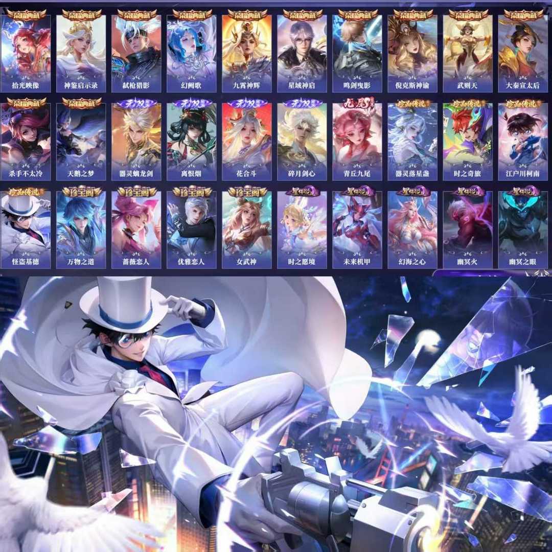 限制: 租号5次及以上 |装备描述:【C184】贵族V10~531皮肤12水晶68传说5无双4珍品6金标,满蛇年,曜无双,离恨烟,花合斗,碎月剑心,柯南基德,续相思,星之鸣奏,九尾天狐,情瑶,拾光映像,弑枪猎影,神鉴启示录,幻阙歌,九霄神辉,牧神诗旅,霜北刀,黄金天蝎座,逐花归海,琥珀纪元,银白咏叹调,星域神启,倪克斯神谕,全息碎影,鸣剑曳影,大秦宣太后,天鹅之梦,杀手不太冷【全山海情兔年,全寅虎,全五虎上将,全牛年,全五兽】