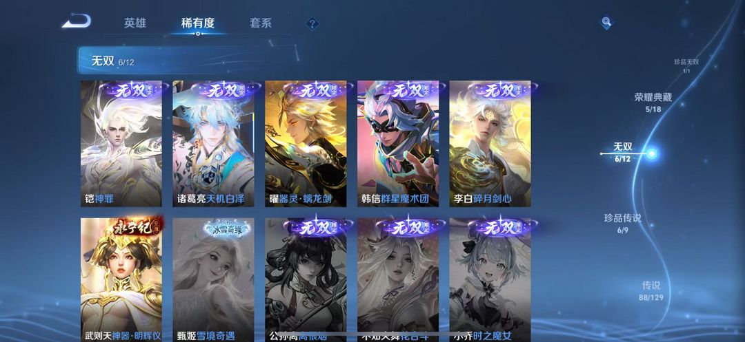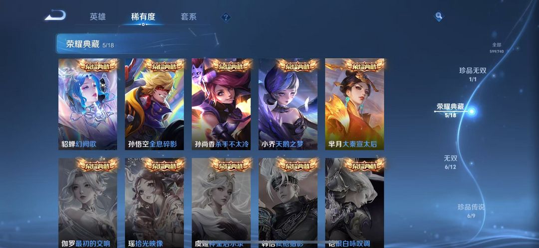 荣耀典藏貂蝉.孙悟空.孙尚香.小乔.芈月⭐无双铠.诸葛亮.曜.李白.韩信.武则天⭐珍品传说⭐各种限定