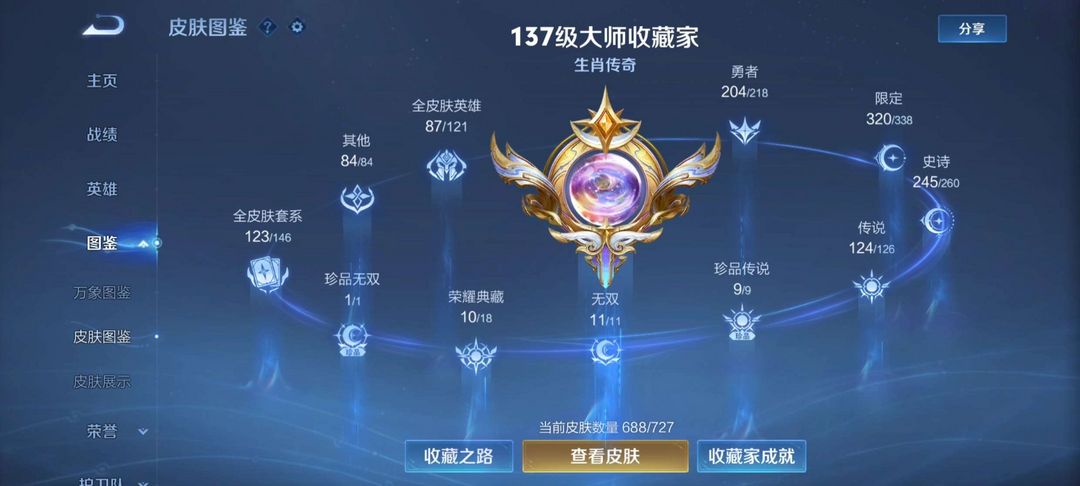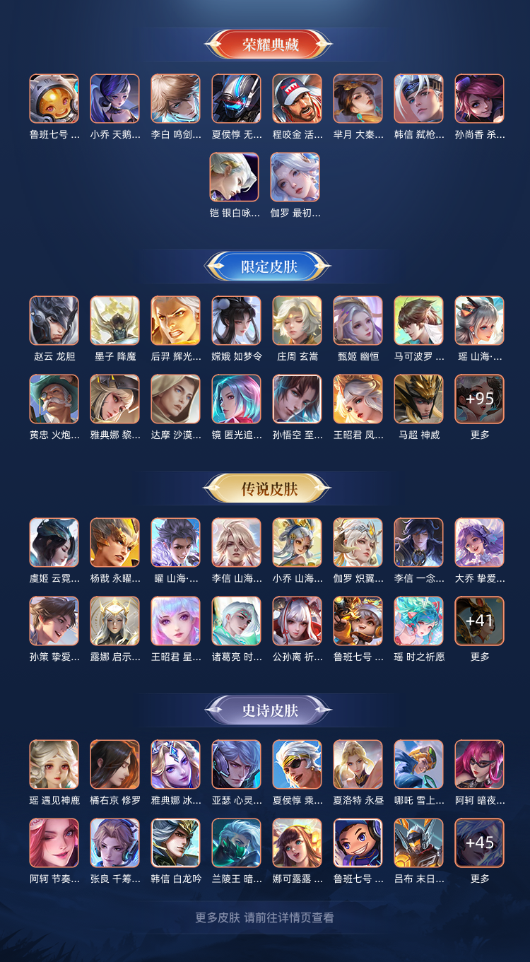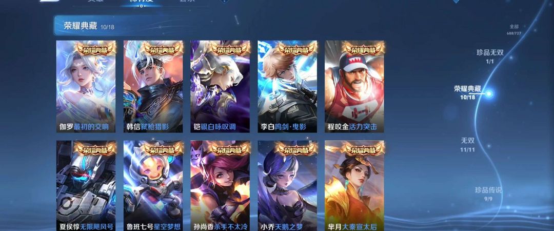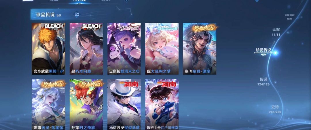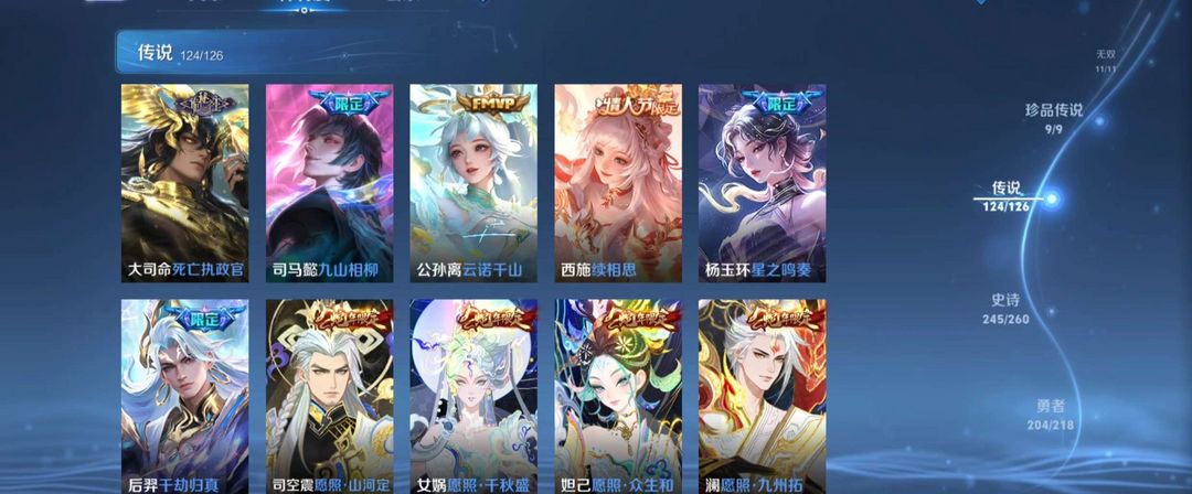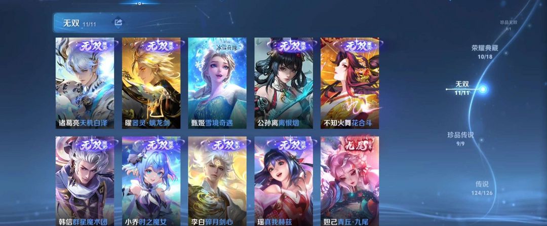 1珍品无双★10典藏★12无双★9珍品传说★126传说★多限定皮肤带妹号★