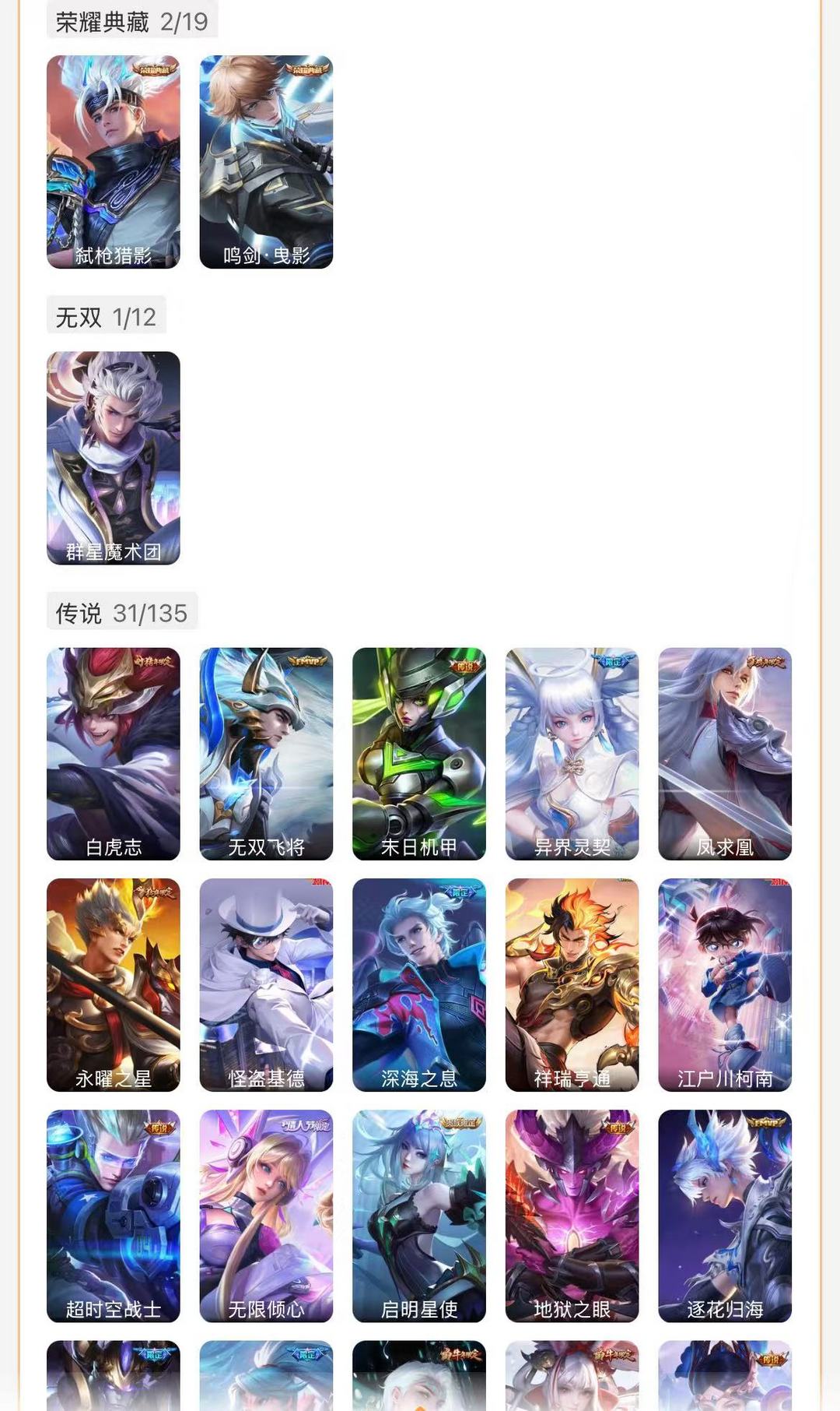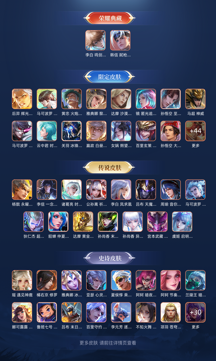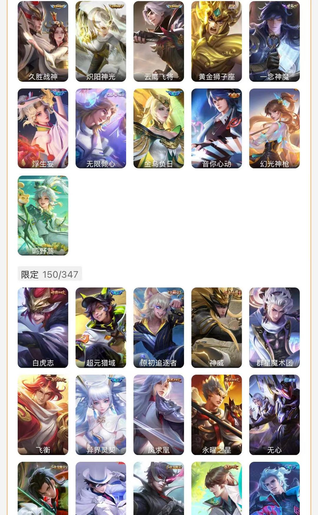 装备描述:全英雄全铭文限定返厂皮肤都有至尊宝大圣娶亲凤求凰白虎志