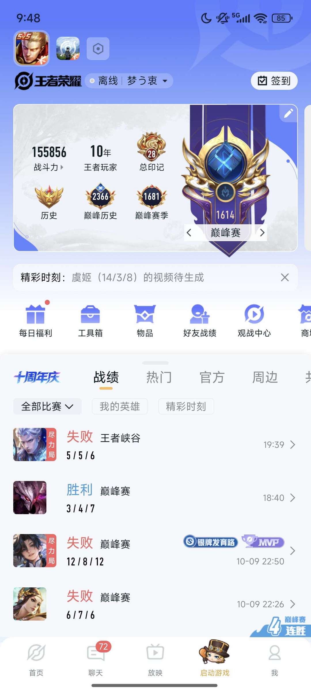 v10多皮肤,带小魔方,带金标,10年顶级老号