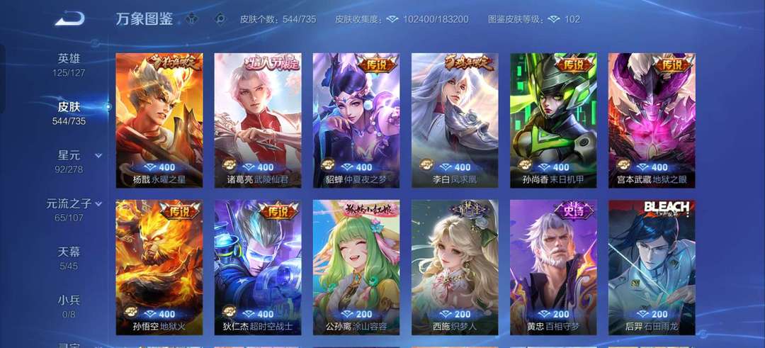 装备描述:无限倾心+白虎志十地狱火+凤求凰十地狱之眼+黑崎一护+李逍遥+哈迪斯+山海五皮