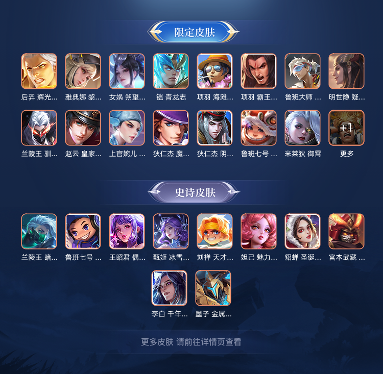 铂金段位炸鱼专属,有后羿限定,项羽霸王别姬,凯青龙志,电玩小子,梁祝等限定皮肤