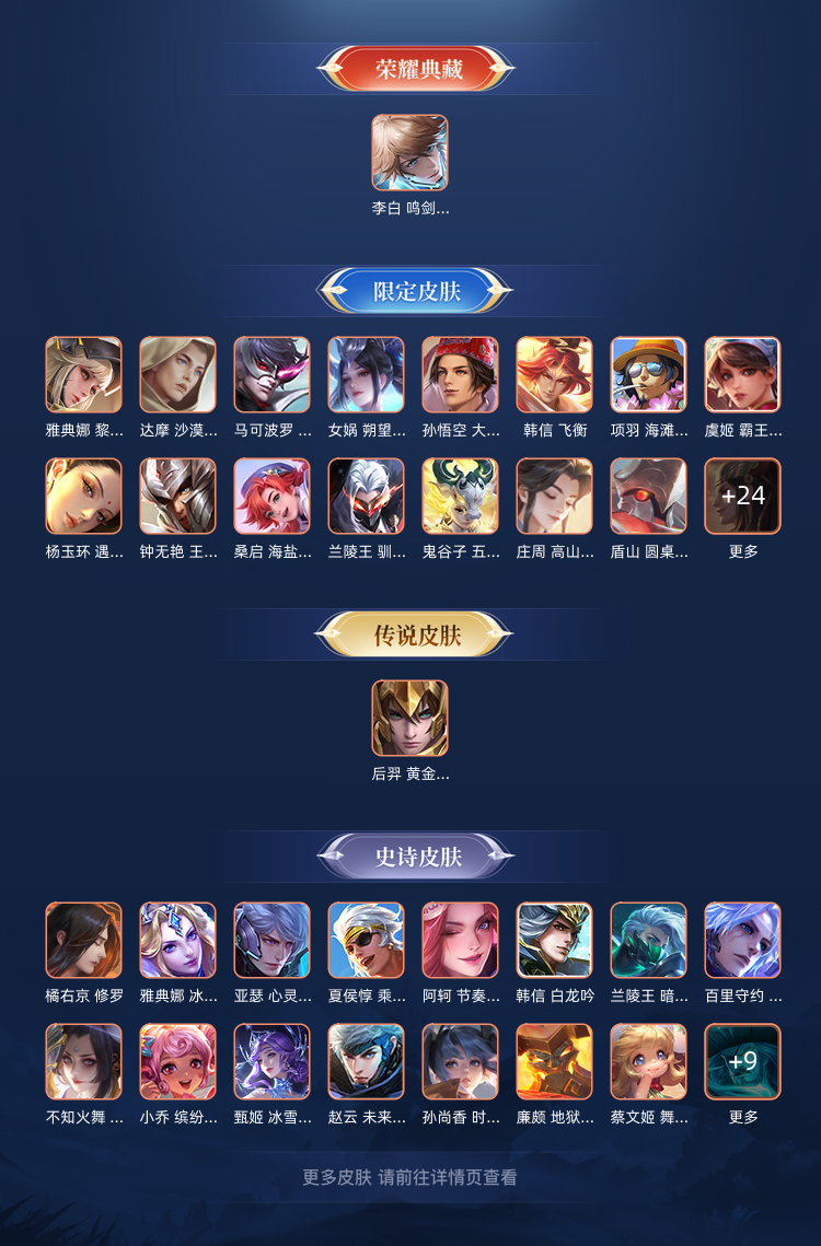 李白荣耀典藏 +240个皮肤 !老玩家账号!铭文满级随便用! 金币随便用!