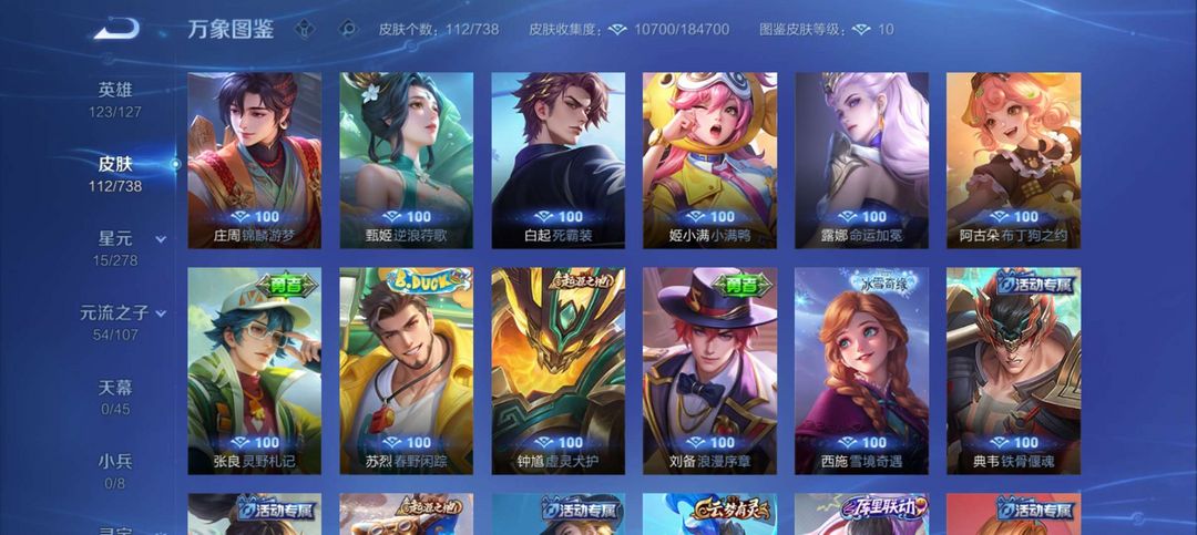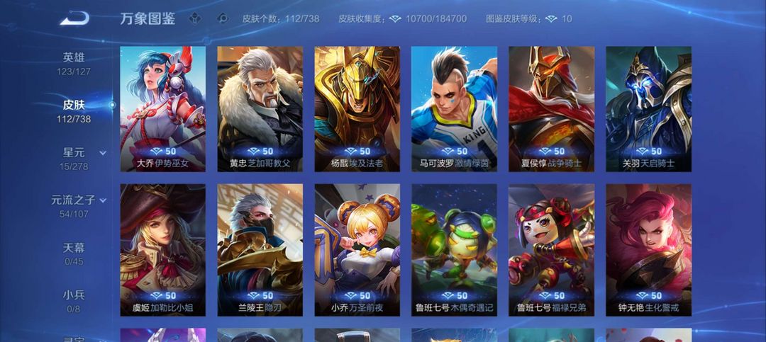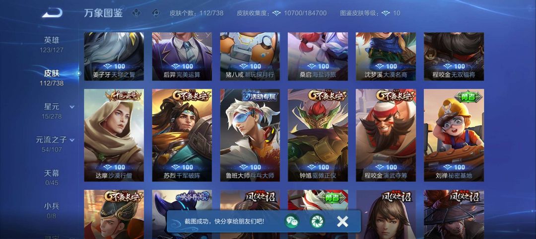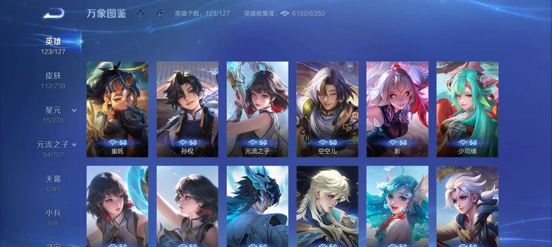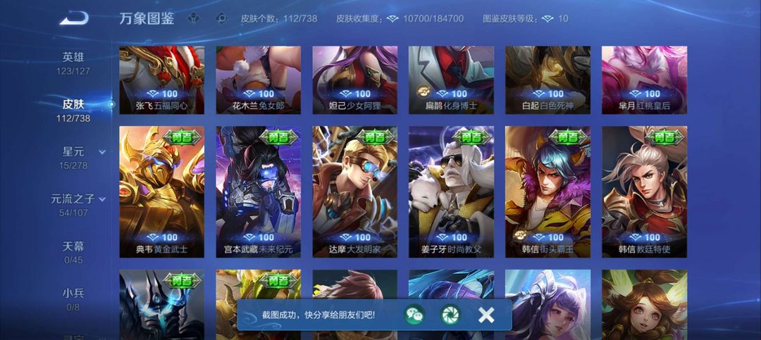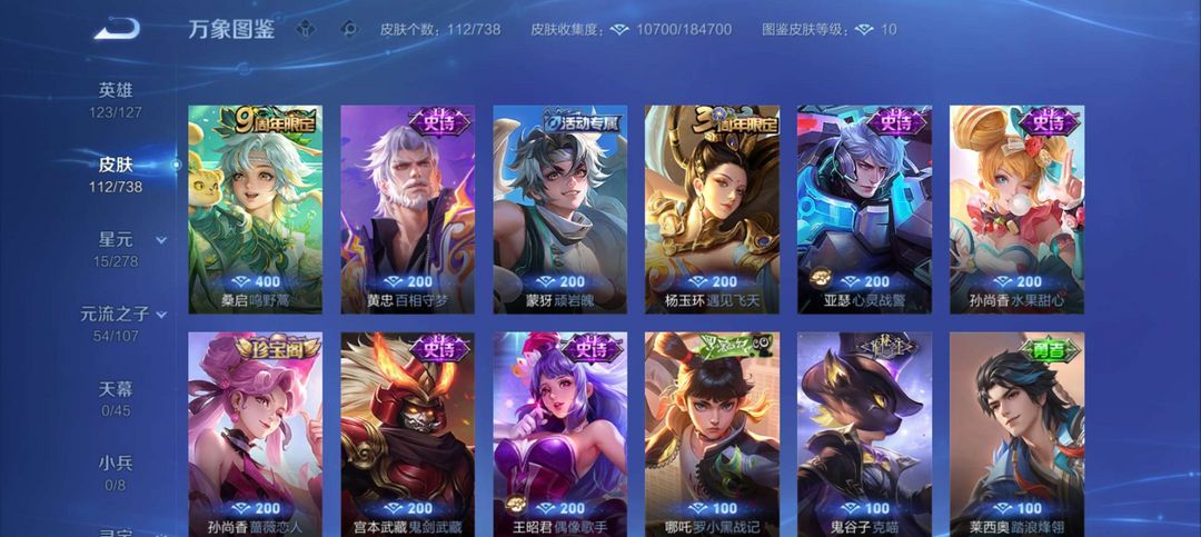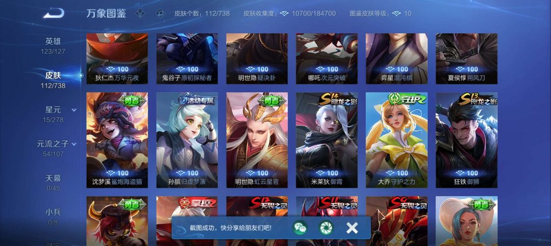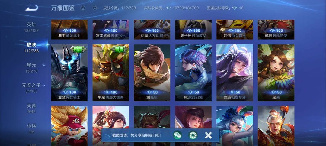 差两三个就满英雄,皮肤也120几个,个人玩家,有需求,随时开黑喽!!