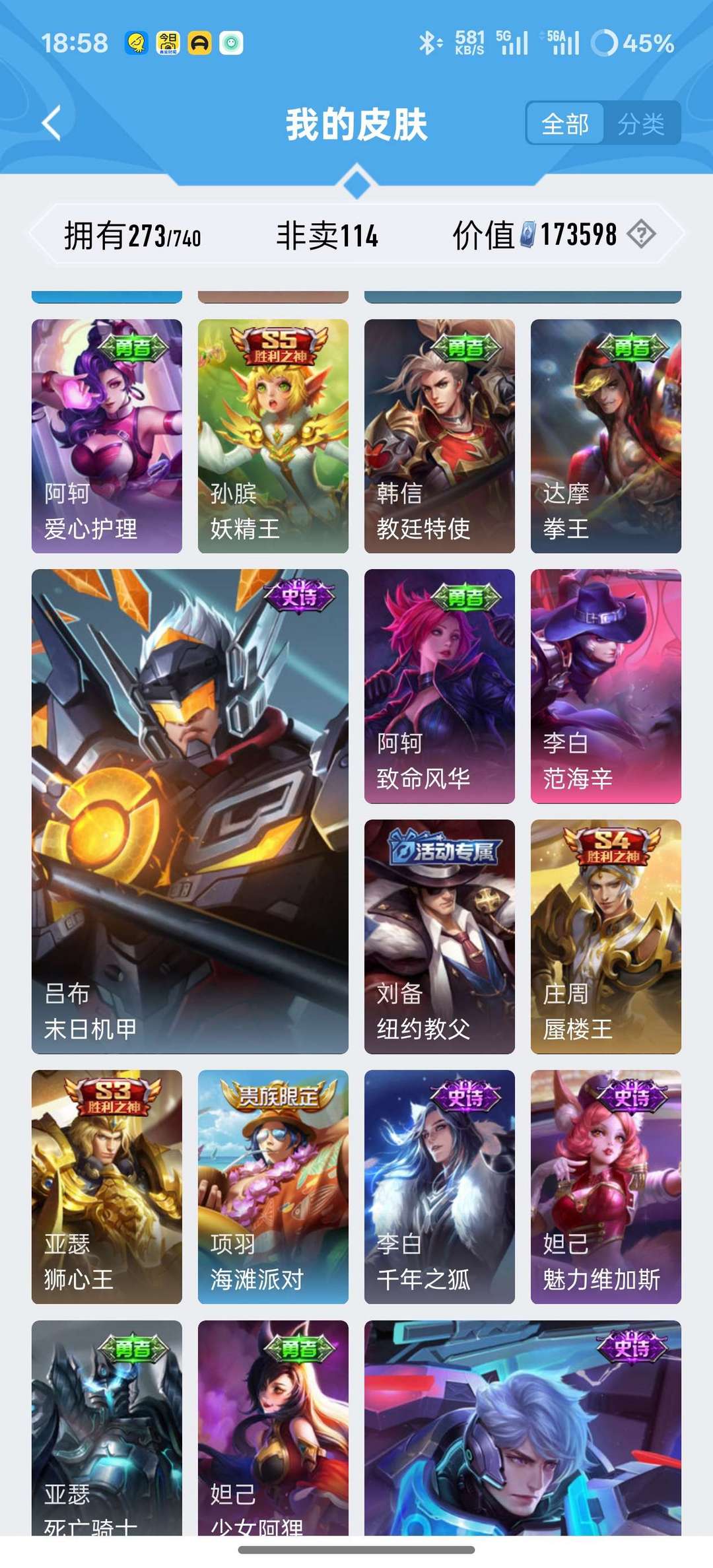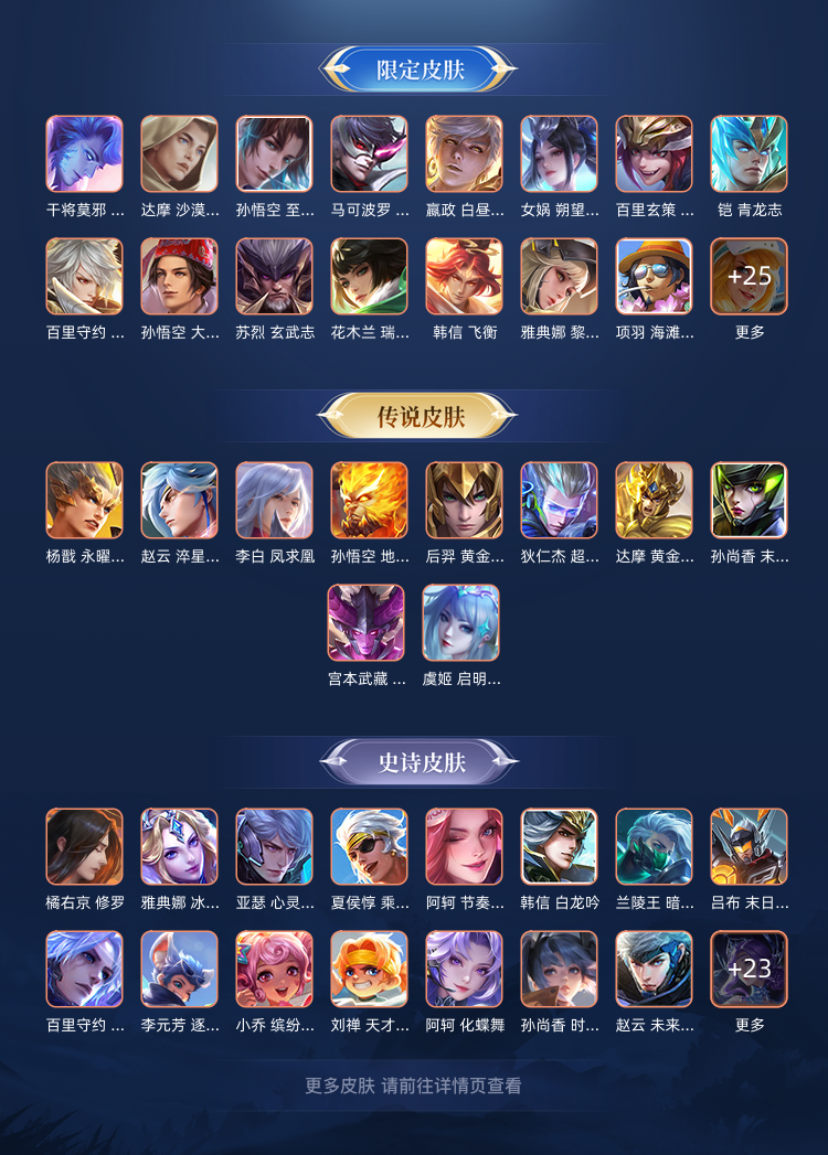 装备描述:青龙朱雀白虎玄武麒麟都有,凤求凰,末日机甲,狮子座,射手座,蔷薇恋人,霜北刀,赵云传说。2022年前的皮肤基本都有