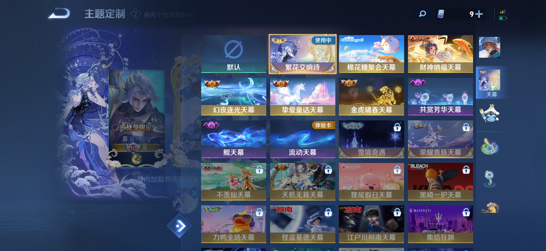 v11贵族572皮貂蝉无双全屏天幕全套诸葛/凯/李白/韩信/耀无双全套珍品传说全套