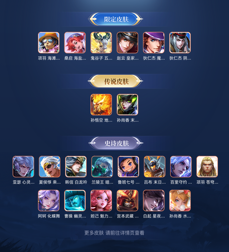 限制: 租号1次及以上 |装备描述:孙尚香龙年限定 孙尚香末日机甲 猴子地狱火等等
