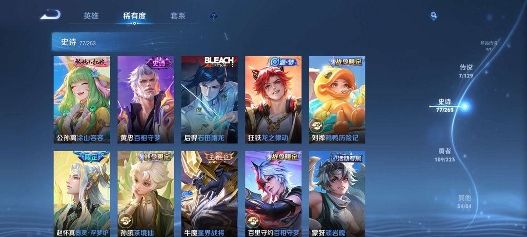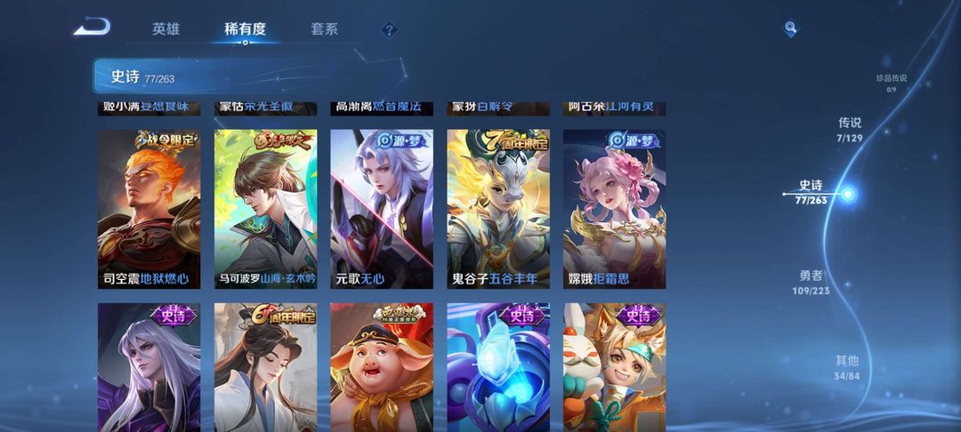 两典藏*虞姬*凯澜*年限,女娲*年限-铭文全满史诗皮肤大部分都有三荣耀印记,市标需要的可以租