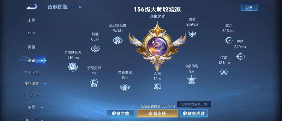 装备描述:无双尊荣贵族 683皮 接近全皮 满英雄满铭文