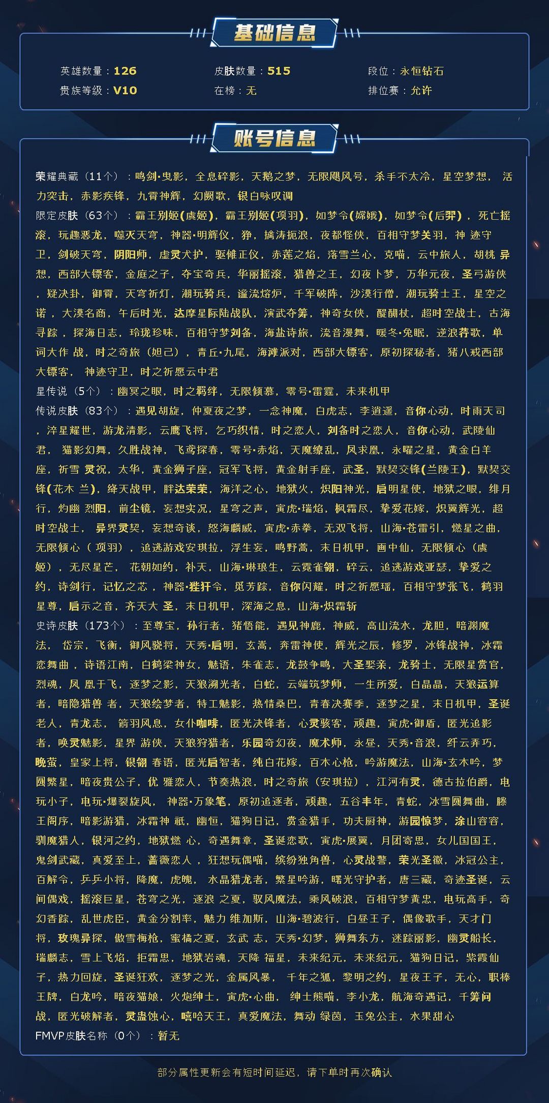 限制: 撤单率<50%才可租用此帐号装备描述:极品V10【514皮12水5星】妄想奇谈/妄想实况/双至尊/灼幽烈阳/鹤羽星尊/貂蝉凯典藏/81传说