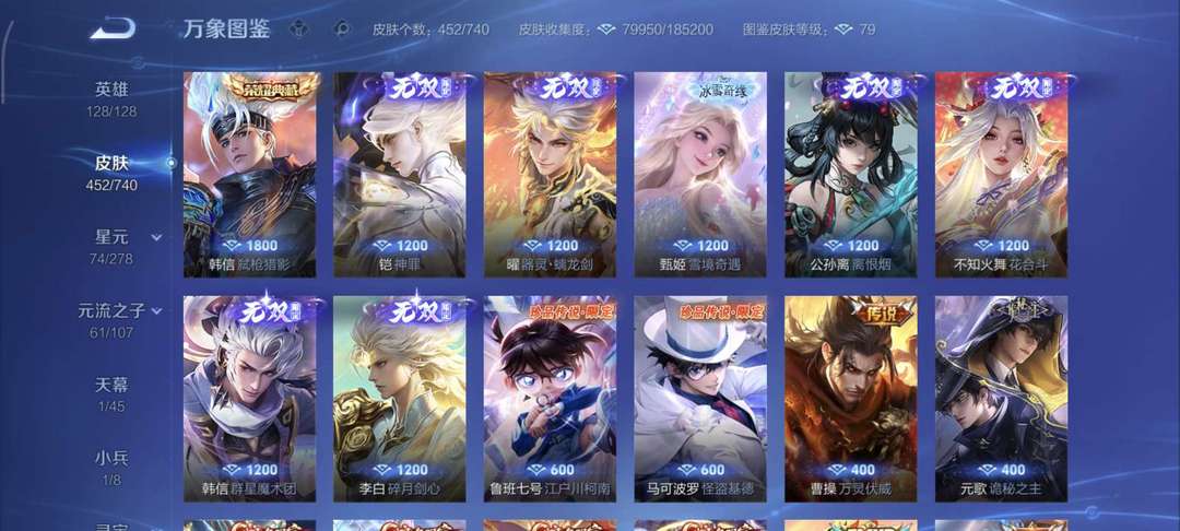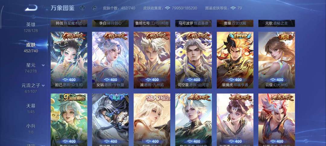 好几个无双皮肤很多传说皮肤,铭文全满,欢迎使用