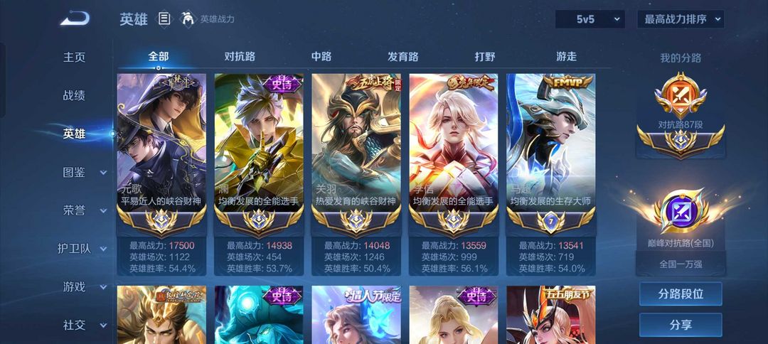 四月在榜87段国服对抗路✨省4吕布项羽✨1w7国服元歌✨可排位禁巅峰