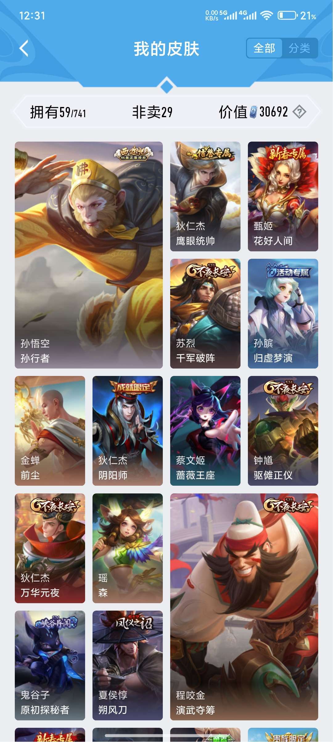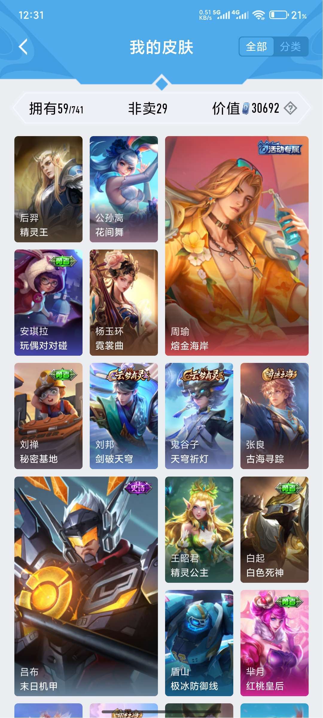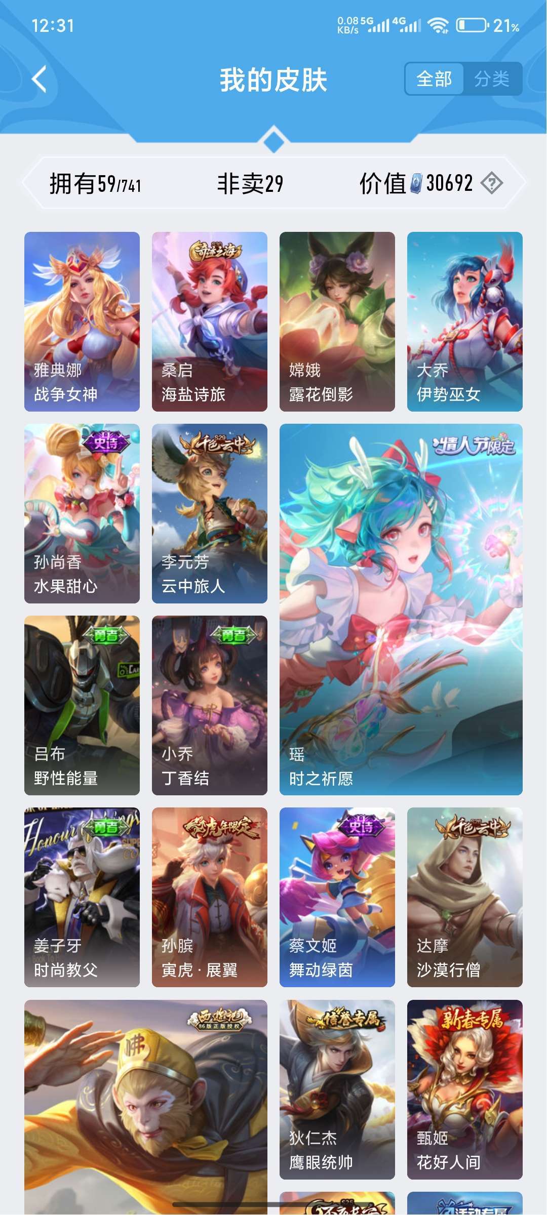 LJ❤100英雄60皮♥时之祈愿♥虎年展翼♥末日机甲♥水果甜心♥游园惊梦♥大圣娶亲♥紫霞仙子♥等多皮