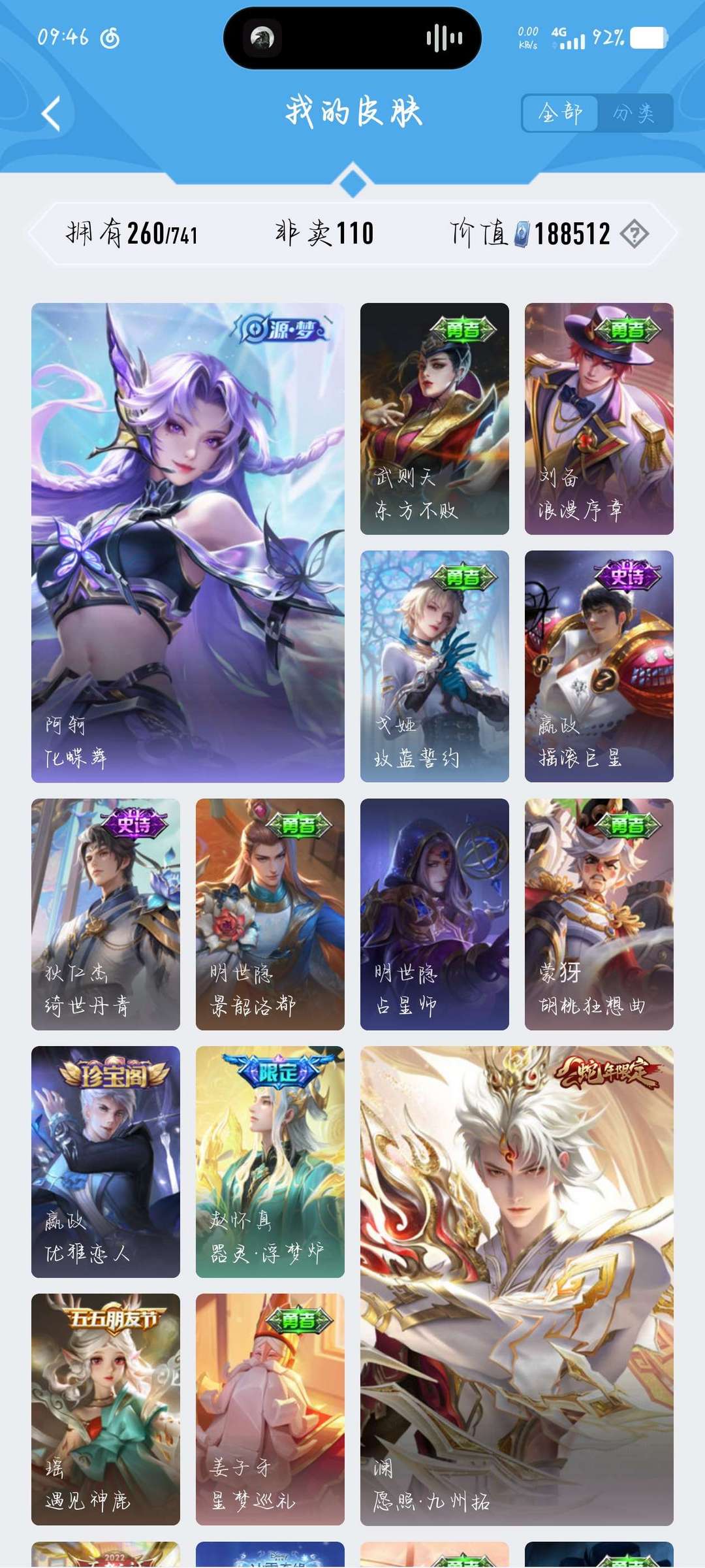 装备描述:带妹号*乘龙-钟鸣鼎*时之恋人*一念神魔*器灵-浮梦卤*愿照-九州托*守约传说战令*凯典藏*马可怪盗基德等一些热门英雄皮肤(请勿发布不当言论请勿违者后果自负)