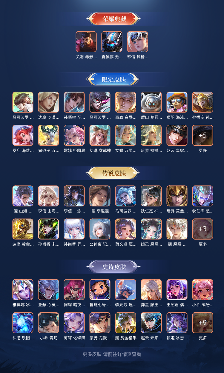 装备描述:很多限定皮肤,41个传说3个荣耀水晶,很多史诗