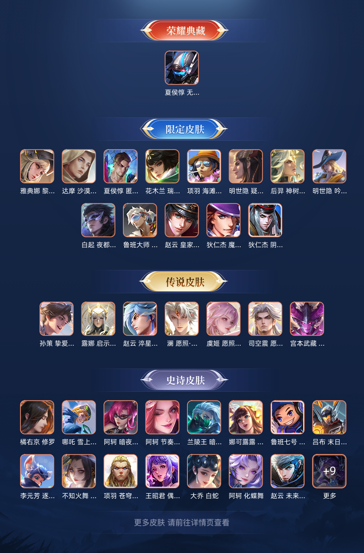 装备描述:大国夏侯惇 金标露娜 金标橘右京 金标嫦娥 金标裴擒虎