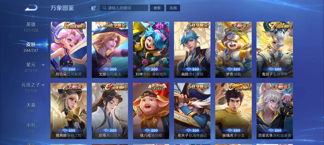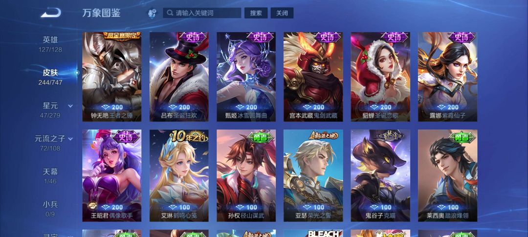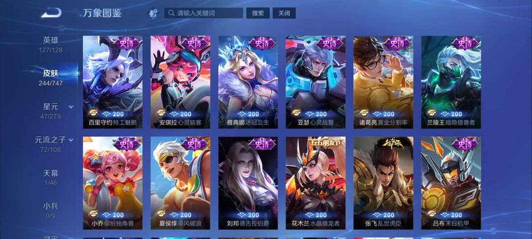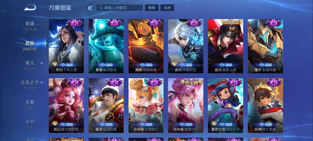 127个英雄244个皮肤铭文等级满级想了解的看图片。