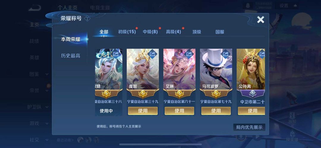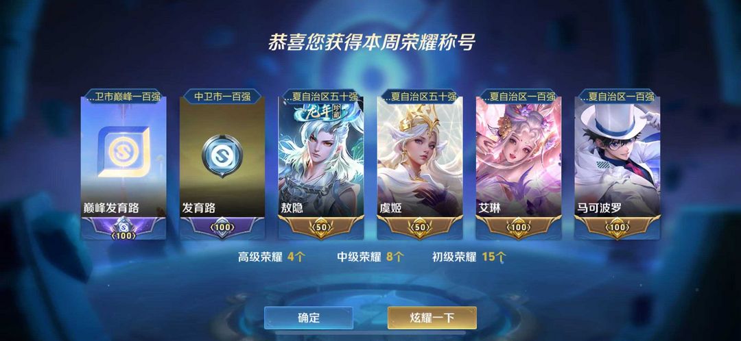 【本周射手巅峰一千五♥在榜省标马可虞姬艾琳敖影】历史国服♥巅峰相框六典藏四无双❤️不可巅峰