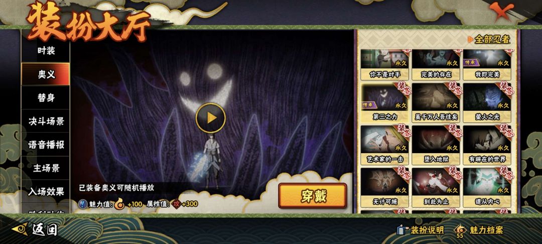 装备描述:47S创立班,无,忍战大野木,半藏白面具死门凯千手扉间秽土转生须佐能乎鼬秽土转生柱间