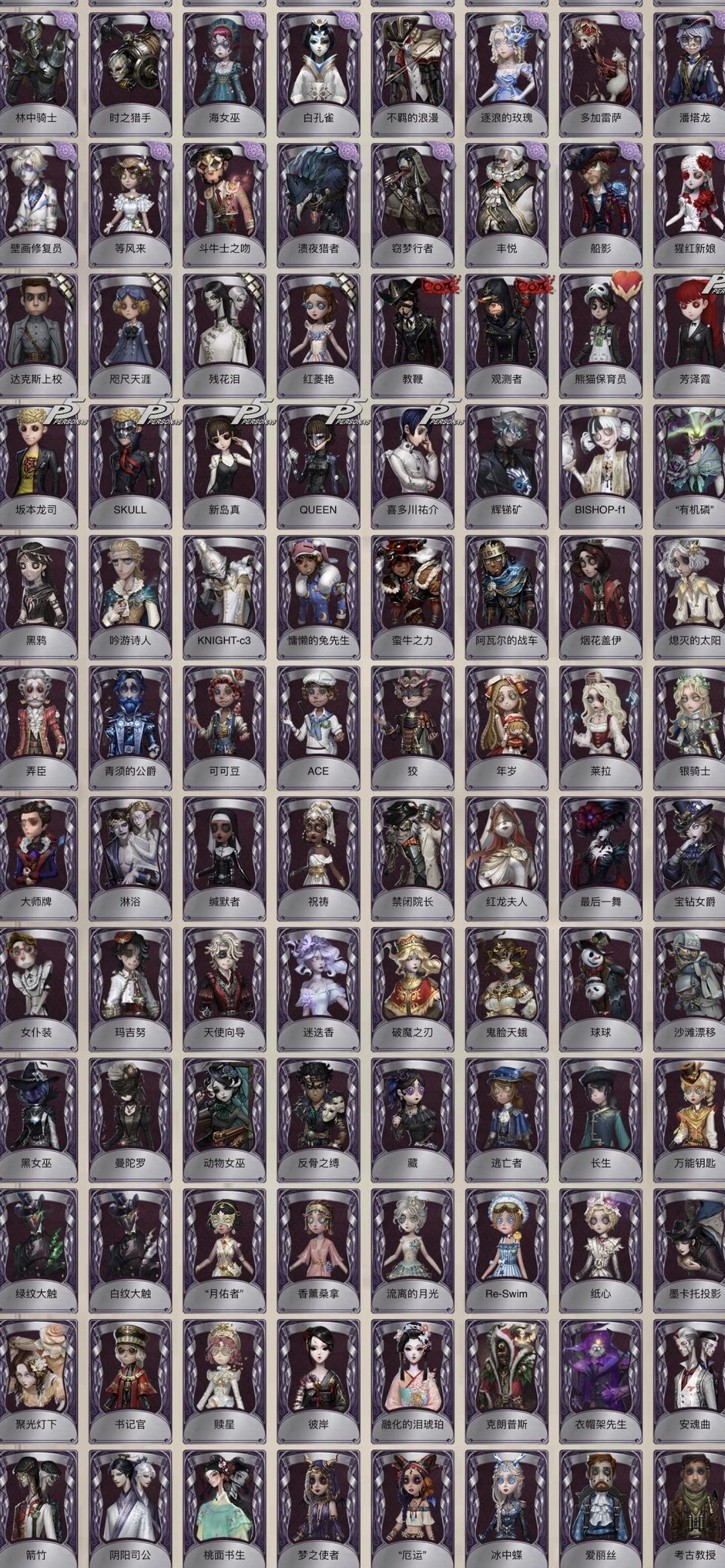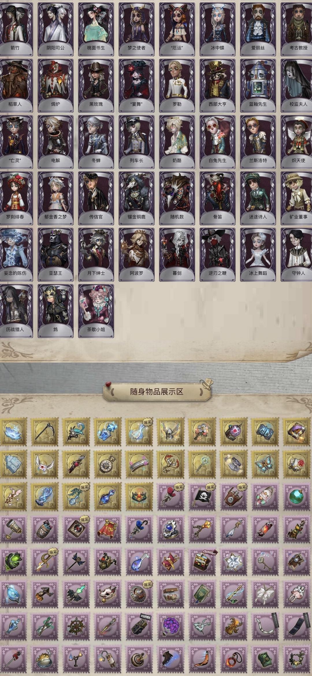 装备描述:【禁言】标题和描述里有的皮肤都有不要在意图鉴我懒得更新。金的数量等于皮肤加挂件的数量。万一好友满了或者你自己加满了不作为退款理由! 全角色 闻雷爪 招风旗 壹原侑子沉默宫殿 盖提亚之遗 天河 椰香假日花序 B.Duck 永夜极光 白泽套 蚀日者 典狱长 速滑种子 猎龙者 当铺老板 菖蒲 心锁 惊鸿套 精致的笑容 试运者 不屈的信仰 火车头 夜潮 拉塔托斯克 长夜星辰 尼德霍格 金纹大触 忘川渡人套 小红帽 不会枯萎的花 花祭 建筑师 寒霜 孤月骑士 海盐特调 灵犀妙探套 怪鸟套 菲尼克斯 紫皮:生态圈 迫降专家 广津柳浪 江户川乱步 樋口一叶 滚滚伙伴 程小时陆光 时光代理人 锦中麟 蜀中客 布朗熊 可妮兔 霓虹先锋 花边新闻 报纸怪客 放映厅 魔音回响 宿醉 冬 气胎 服部平次 安室透 学原猎人 灰烬狂想 雪上小王子 胡桃夹子 浴石商人 林中骑士 窃梦行者 时之猎手 海女巫 白孔雀 壁画修复员 等风来 猩红新娘 达克斯上校 咫尺天涯 残花泪 红菱艳 教鞭 观测者 熊猫保育员 新岛真 QUEEN 喜多川祐介 音波 阿拉丁 慵懒的兔先生 蛮牛之力 烟花盖伊 弄臣 可可豆 ACE 狡 年岁 莱拉 大师牌 淋浴 缄默者 禁闭院长 红龙夫人 迷途诗人 矿业董事 最后一舞 宝钻女爵 女仆装 玛吉努 迷迭香 球球 黑女巫 曼陀罗 动物女巫 反骨之缚 藏 逃亡者 长生 绿纹大触 白纹大触 Re Swim 骨笛 彼岸 安魂曲 箭竹 阴阳司公 厄运 冰中蝶 爱丽丝 考古教授 稻草人 黑玫瑰 宴舞 罗勒 西部大亨 校监夫人 亡灵 电解 冬蝉 白兔先生 炽天使 罗刹绯春 传信官 命运轮盘 亚瑟王 月下绅士 逆刃之鞭 冰上舞蹈 守钟人 历战猎人 鸩 部分挂件:雪莲 噬魂 唤潮 星辰 弄影 逆转之战 未送出的花 雷电生成器 最后的故事 书中蝶 水晶宫 致命的邀请函 猎人的箭囊 最后的馈赠 涅槃 宽恕 见证 红玫瑰手杖 海盗旗 海盗酒壶 黑胶碟 断剑 蓝玫瑰手杖 紫vote盒子 卡住的齿轮 时光相机 白泽玉