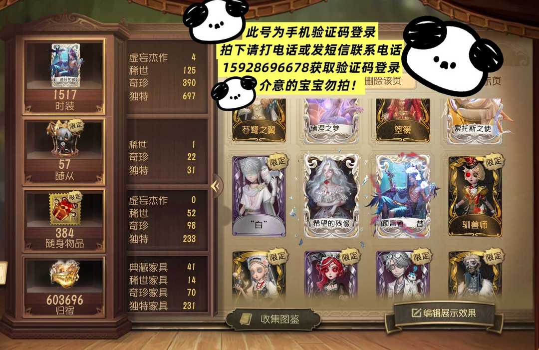装备描述:所见即所得,租赁的就是图中账号,会不定时上新皮肤,禁止一切不文明租号行为,如发现会立即顶号。 亮点皮肤:joker,crow,摩涅莫绪涅之梦,犹格.索托斯之使,希望的残像,废土旅人,黯,白,加特,宿伞真理之下东方的麒麟,真相小姐,典狱长,怪盗基德,白泽,日向创,永恒,鸽子般的尤迪特,荧,逃罪之人,夜行枭,索菲亚,箜篌,驯兽师,速滑种子,晖之羽,心锁,裁决之酒,蚀日者,川上富江,东风摇,试运者,寒香舞,信使,驯兽师,灵狐,惊鸿,猎龙者,珍奇柜,苍鹭之翼,斜眼寄主,猎物的印记,名誉首席,宇宙女巫,哲人石,红骑士,司药套,不合时宜的危鲁弗,石榴碟小姐,破碎的芙拉吉尔,壹原侑子,艾扎克,福尔摩斯,文豪野犬中岛敦,芥川龙之介,太宰治,中原中也,记者华生小姐,女神异闻录一二弹,福尔摩斯,四月一日,恐怖美术馆等满配。37限定金15联动金 紫皮亮点:宿伞真理之下东方的麒麟,先知白,先知黯,园丁真相小姐,入殓师加特,调香师时之砂,魔术师光学镜面,佣兵蒸汽少年,佣兵OPH.NAIB,囚徒OPH.LUCA,古董乔苓,杂技演员李天辰,隐士刘枭,杰克加里,记者伊布,空军梅爱丽,祭司绯,莎莉,蛙里奥。